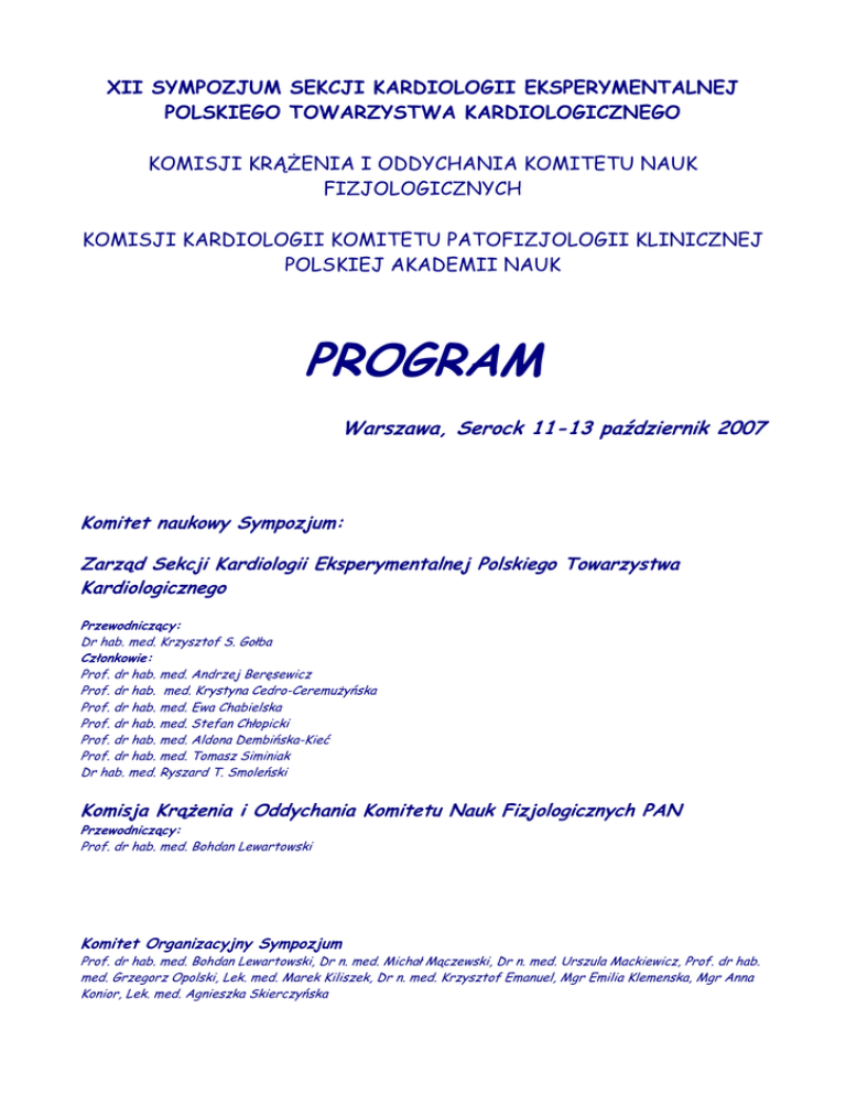 program - Sekcja Kardiologi Eksperymentalnej