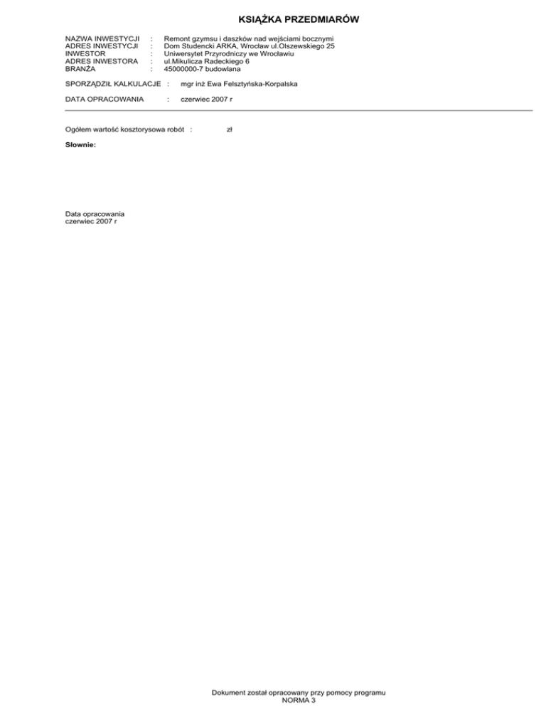 przedmiar budowlany nr 2 - Uniwersytet Przyrodniczy we Wrocławiu