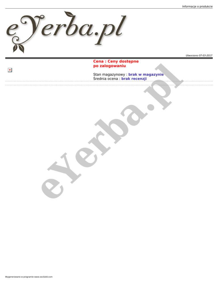Informacje o produkcie Utworzono 07-03-2017 Cena : Ceny dostępne po zalogowaniu eY er b a. pl Stan magazynowy : brak w magazynie Średnia ocena : brak recenzji Wygenerowano w programie www.oscGold.com