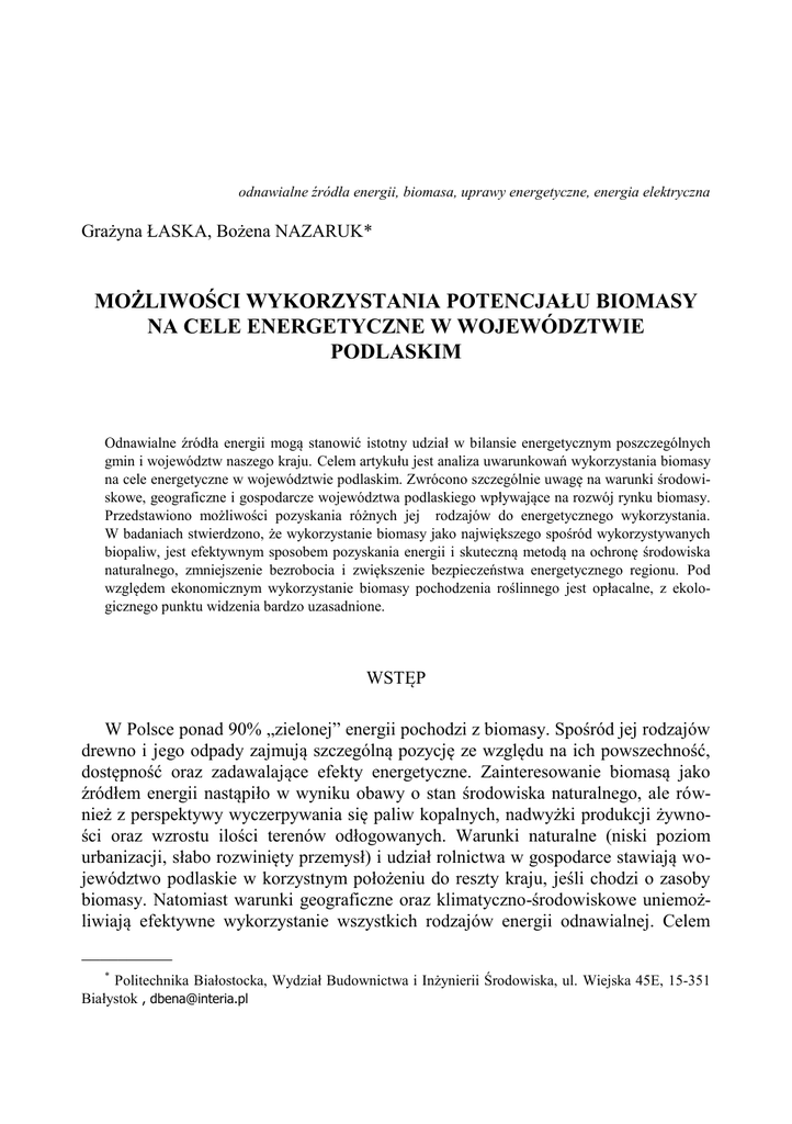 Możliwości wykorzystania potencjału biomasy na cele - Eko-DOk