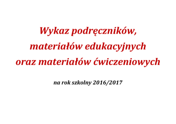 Podręczniki na rok szkolny 2016-2017