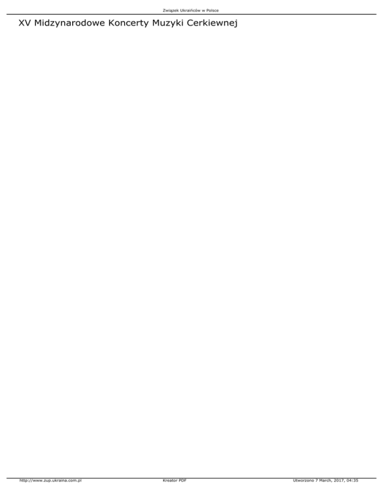 Związek Ukraińców w Polsce XV Midzynarodowe Koncerty Muzyki Cerkiewnej http://www.zup.ukraina.com.pl Kreator PDF Utworzono 7 March, 2017, 04:35