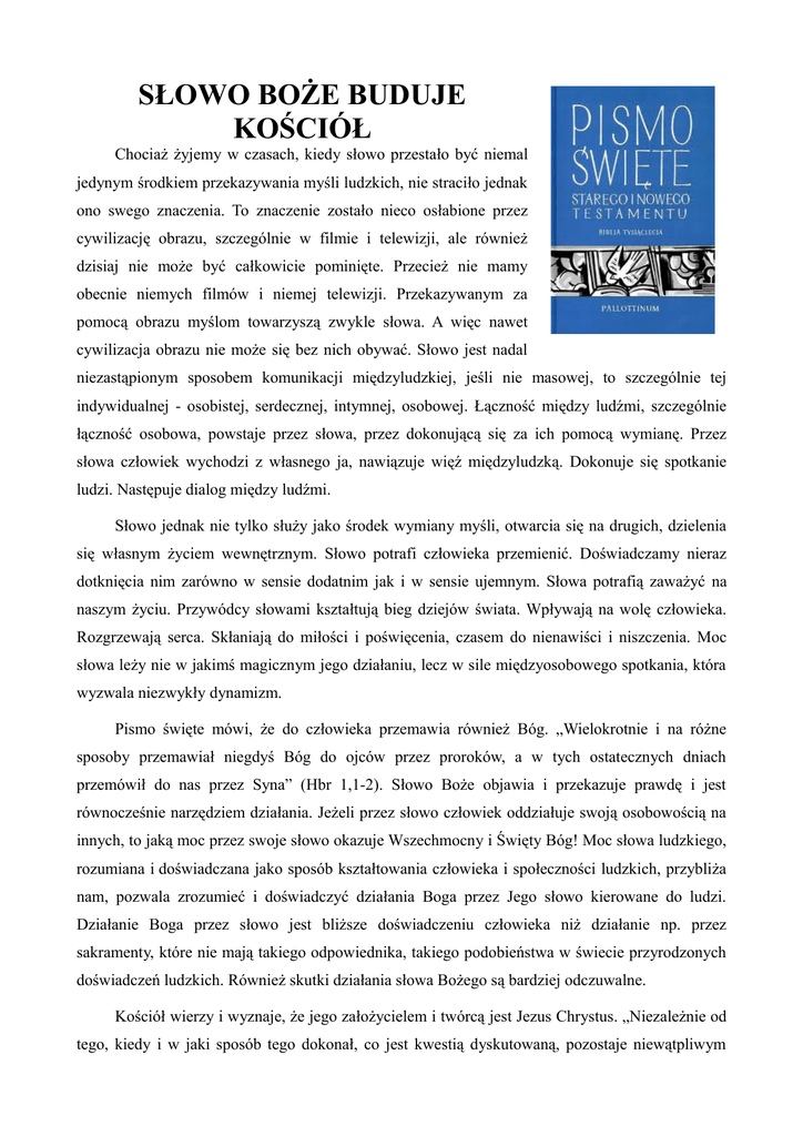 SŁOWO BOŻE BUDUJE KOŚCIÓŁ
