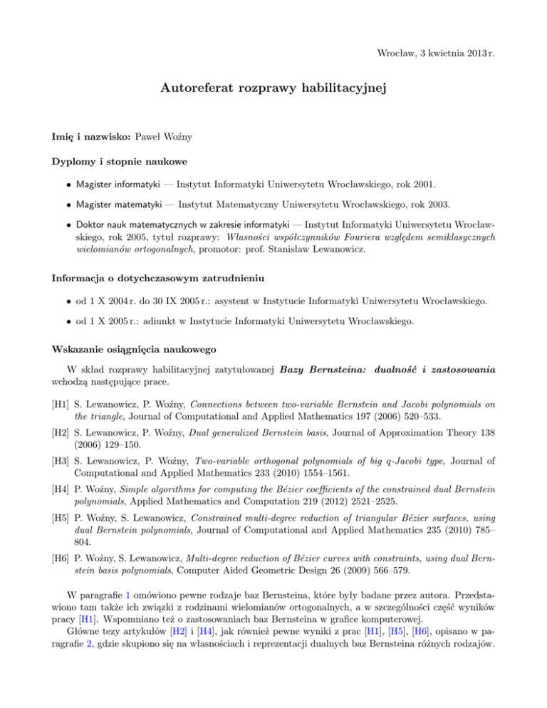 w teorii aproksymacji i grafice komputerowej. W niniejszym autoreferacie streszczamy najważniejsze