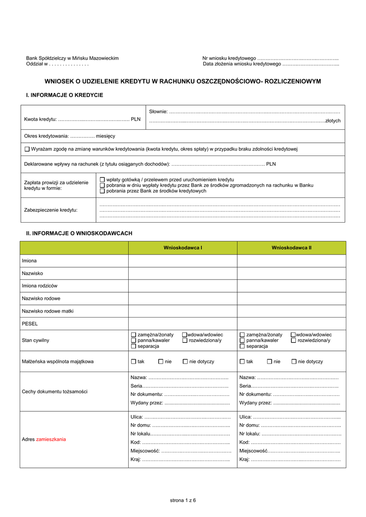 Wniosek o kredyt w ROR - Bank Spółdzielczy w Mińsku Mazowieckim