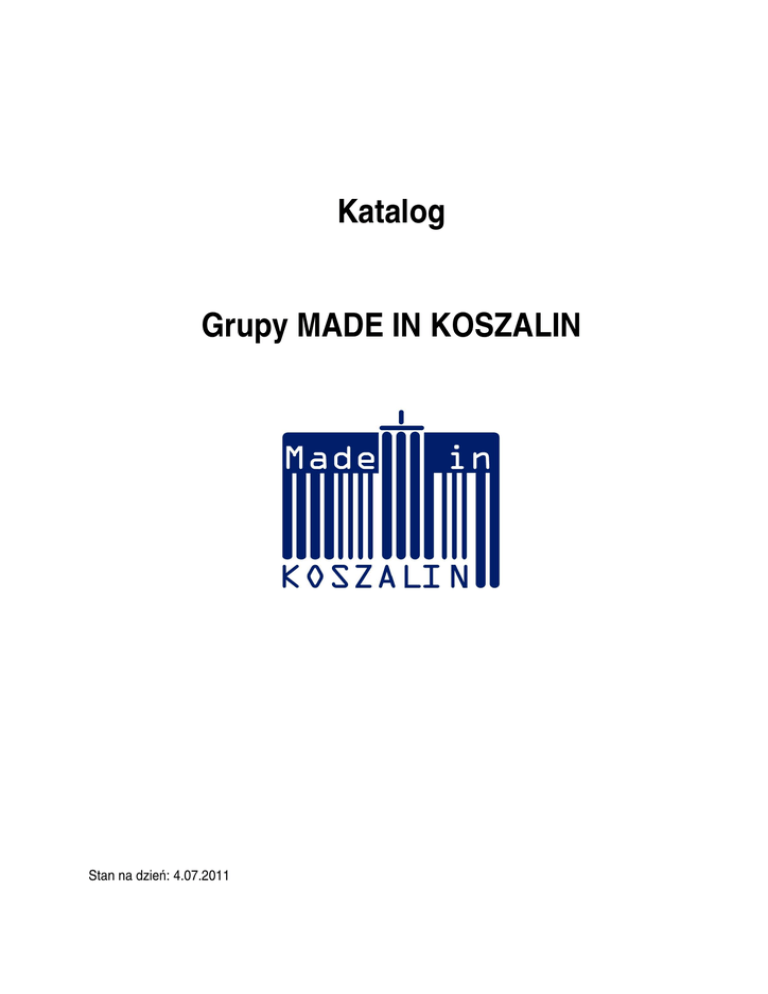 Katalog Grupy MADE IN KOSZALIN Stan na dzień: 4.07.2011 Członkowie Grupy MADE IN KOSZALIN (wg branż) 1. Artykuły spożywcze • Kapela Cafe Tomasz Kapela • Roszana Restauracja Fenicja • 2. Budownictwo, instalatorstwo, obsługa nieruchomości • Budmar Sp. z o.o. • Euro-Widnows Sp. z o.o. • FORMAT inż.Tadeusz Osiecki • Gama Plawgo & Zawisza Sp. J. • Ganz Polska Sp. z o.o. • Infinio Sp. z o.o. • Kometal – Wytwórnia Części Samochodowych Sp. z o.o. • Koprin Sp.z o.o. • Loos co-operation Jarosław Loos • Miejska Energetyka Cieplna Sp. z o.o. w Koszalinie • NORD Nieruchomości Agnieszka Niechajczyk • P.P.H.U. TĘCZA Ewa Żur Hurtownia Artykułów Budowlanych • Przedsiębiorstwo Budowlane BUDOMAL Słowik, Subalski, Zięba Sp. J. • Przedsiębiorstwo Budownictwa Ogólnego i Usług Inwestycyjnych Piotr Flens • PROFIL Pracownia Projektowa i Realizacji Inwestycji K. Przerwa • Przedsiębiorstwo Usług Inwestycyjnych POWIERNIK Sp. z o.o • PUF Sp. z o.o. • Usługowy Zakład Teleelektroniczny AB-TEL. inż. Andrzej Bieliński 3. Edukacja • • • • • Alpha – Tłumaczenia Helena Sieniawska Centrum Muzyczne Metrum Małgorzata Zdrojewska FOYSKI New Age School of English Szkoła Języka Angielskiego i Niemieckiego International House Środkowopomorskie Centrum Edukacji Samorządowej 4. Informatyka • AMADO A.Dobrzański, J.Kurasz Sp.J. • eData S.C. • F.H.U MIKRO- SERWIS S.C Robert Bodendorf & Magdalena Bodendorf • Mentax.pl sp. j. Bartosik, Polak, Tlołka • PERFEKTUM Rafał Szlachcikowski 5. Kultura i sztuka • Agencja Artystyczna - Szkoła Tańca TOP TOYS • Filharmonia Koszalińska im. Stanisława Moniuszki • Muzeum w Koszalinie • Pracownia Artystyczna PRO ARTE • Studio Tańca PASJA • Teatr Variete Muza J.Barów, J.Loos s.c. 6. Odzież i galanteria skórzana • Firma Handlowa ORKAN AT S.C. • HAFTKOM Ewa Sadowska 7. Podatki, rachunkowość, ubezpieczenia, prawo – usługi i doradztwo • Biuro Podatkowe GRACJUS Iwona Nowaczyk • Content Insurance Anna Borowiak Broker Ubezpieczeniowy • Kancelaria Doradztwa Podatkowego i Audytu DEBET • Kancelaria Notarialna Tadeusz Grzankowski i Wojciech Laskowski s.c. • Kancelaria Podatkowa PROGRES Ewa Gnacińska • Kancelaria Radcy Prawnego –Iwony Wanli 8. Reklama, poligrafia, opakowania • Ad. Media Consulting • Agencja Reklamowo-Handlowa STARNAŚ Piotr Starnawski • ARSmedia Ryszard Kwiatkowski • RASEL T. i B. Lewandowscy • ROKART SYSTEM Anna Radziwonowicz • Zakład Poligraficzny POLIMER 9. Turystyka, hotelarstwo, gastronomia • BIURO TURYSTYCZNE Sławomira Małgorzata Ignatowicz • PHU BJB Sp. z o.o. • Przedsiębiorstwo Usług Turystyczno-Rehabilitacyjnych WODNIK H i M Rudniccy Sp. J. • Świat Lodów Magdalena, Maciej Staśkiewicz • TDJ S.C. Hotel Sport • Uzdrowisko Połczyn S.A. – źródło zdrowia, relaksu i urody 10. Usługi • • • • • • • • • • • • • • Agencja Celna TEXIM Sp.C. DABO Dariusz Serafin LEONARDO Jakub Nagórski KURTIAK I LEY Wydawnictwo Artystyczne PerMedia S.A . Północna Izba Gospodarcza Oddział w Koszalinie Przedsiębiorstwo Wielobranżowe LEAR Lech i Artur Kostrzewski S. J. PW ELWI Jan Jankowski RABELL LOGISTICS Radio Koszalin S.A. Spółdzielnia Unia Stowarzyszenie Transportu-Osobowego RAD-TAX Koszalin Studium Kwiatowe FLORA Krystyna Dowhań WinCon Sp. z o.o. 11. Zdrowie • Adria SQUASH - CENTRUM KULTURY FIZYCZNEJ ADRIA s.c. Janusz Stasica Maciej Kliś • Firma NORMAN • Lensa s.c. Tomasz Wimmer, Bartłomiej Zimny • • • • Meden-Inmed Sp. z o.o. Regionalne Centrum Informacji Medycznej i Promocji Zdrowia INFO-MEDIC SymulMed Jarosław Kalenik Zarząd Obiektów Sportowych Sp. z o.o. Partnerzy Grupy MADE IN KOSZALIN • • • • • • • • • • • • • • • • • • • • • • ALIOR BANK Berufliche Schule Angermünde Creon Poland Sp. z o.o. Electrawinds Poland Fabryka Słowa s.c. T.Chaciński i M. Stankiewicz Fundacja Transferu Wiedzy i Przedsiębiorczości Instytut Wzornictwa Politechniki Koszalińskiej Klub Judo SAMURAJ Klub Sportowy GWARDIA Koszalin Koszalińska Agencja Rozwoju Regionalnego Koszalińska Wyższa Szkoła Nauk Humanistycznych Koszalińskie Towarzystwo Sportowe „Mx-Koszalin” Ogólnokrajowa Spółdzielnia Turystyczna GROMADA – Hotel GROMADA Parlament Studentów Politechniki Koszalińskiej Polsko-Niemiecka Kancelaria Adwokacka Roman A. Otto Powiatowy Urząd Pracy w Koszalinie Stowarzyszenie Przyjaciół Koszalina TOGO Międzynarodowe Przedsiębiorstwo Handlu Manufakturą Urząd Miasta i Gminy Bobolice Urząd Miasta i Gminy w Sianowie Urząd Miasta Koszalin Zespół Szkół Nr 1 im. Mikołaja Kopernika w Koszalinie Artykuły spożywcze • • Kapela Cafe Tomasz Kapela Roszana Restauracja Fenicja Kapela Cafe Tomasz Kapela 75-900 Koszalin Osoba kontaktowa: Tomasz Kapela tel. 607-456-541, 607-456-542 email: [email protected] www.automaty.org Profil firmy/ instytucji: Firma należy do grupy trzydziestu autoryzowanych operatorów vendingowych Kraft-Maspex w zakresie dystrybucji produktów Jacobs, Tymbark, La Festa na trenie Polski. Specjalizujemy się w budowaniu i obsłudze sieci automatów samosprzedających, oferujących klienatom kompleksowy dostęp do napojów gorących, zimnych, drobnych przekąsek. Dla firm/ instytucji z Grupy możemy zaproponować: Dodatkowe rabaty na korzystanie usług firmy. ROSZANA Restauracja i Club Fenicja ul. Zwycięstwa 46/V/01 75-037 Koszalin Osoba kontaktowa: Adam Nasser Dalati tel. 0604 783 658, 094 347 07 07 e-mail: [email protected] www.fenicja.pl Profil firmy/ instytucji: Eksport-import: materiały włókiennicze, tekstylia oraz produkty turystyczne i sezonowe. Pomoc w nawiązaniu kontaktów międzynarodowych, szczególnie z krajami Bliskiego Wschodu oraz Unii Europejskiej. Gastronomia - restauracja i kawiarnia. Obsługa cateringu oraz wynajem sali na spotkania handlowousługowe. Dla firm/ instytucji z Grupy możemy zaproponowa