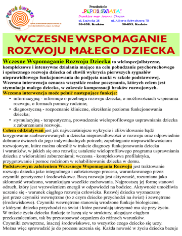 Brak Wczesnej Interwencji może poważnie utrudnić - opóźnić lub zniekształcić,