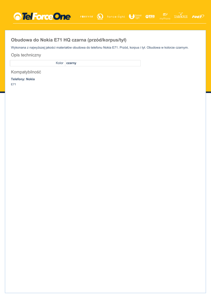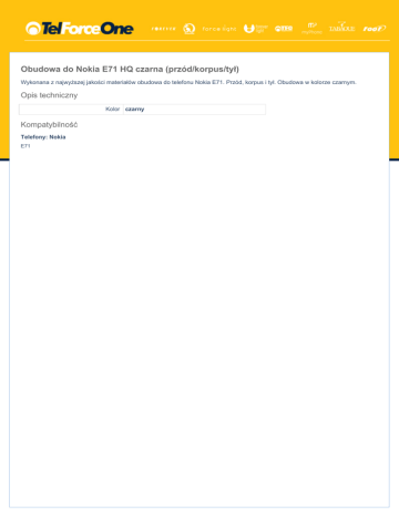 Obudowa do Nokia E71 HQ czarna (przód/korpus/tył) Wykonana z najwyższej jakości materiałów obudowa do telefonu Nokia E71. Przód, korpus i tył. Obudowa w kolorze czarnym. Opis techniczny Kolor czarny Kompatybilność Telefony: Nokia E71