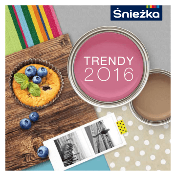 TRENDY 2 O16 ROK 2016 niesie ze sobą nowe wydarzenia, odkrycia naukowe, pomysły i rozwiązania. To, co jeszcze niedawno było przyszłością, już jest teraźniejszością. Świat zmienia się coraz szybciej, a razem z nim – otoczenie, w którym żyjemy. Kolory, które zaczynają dominować w domach, wnętrzach i na ulicach miast, stanowią rodzaj zapisu naszych czasów – rzeczywistości, nastrojów i upodobań, charakterystycznych dla drugiej dekady XXI wieku. W PALETACH KOLEKCJI ŚNIEŻKA SATYNOWA ORAZ ŚNIEŻKA BARWY NATURY ZNAJDĄ PAŃSWTO WIELE ODCIENI, KTÓRE NADADZĄ WNĘTRZOM PRZYJAZNY I OPTYMISTYCZNY CHARAKTER, ZGODNY Z NAJNOWSZYMI TRENDAMI. NIE POWIELAJMY ZNANYCH ROZWIĄZAŃ – POZWÓLMY SIĘ ZAINSPIROWAĆ. 194 migdałowy raj 192 srebrzysty poranek 193 górski strumień W poszukiwaniu życiowych wzorców współczesny mieszkaniec Europy coraz częściej spogląda na Północ. Nieskażona przyroda, zaradność mieszkańców, integracja lokalnych wspólnot oraz ich dbałość o środowisko naturalne mogą budzić podziw. SKANDYNAWSKIE PODEJŚCIE DO PRZESTRZENI, ŚWIATŁA, KOLORU I MATERIAŁÓW DOSKONALE SPRAWDZA SIĘ WE WSPÓŁCZESNYCH DOMACH. ZORZA POLARNA, GEJZERY, FIORDY I LODOWCE STANOWIĄ ŹRÓDŁO WIELU KOLORYSTYCZNYCH INSPIRACJI. CHŁODNE ODCIENIE BIELI, SZAROŚCI I BŁĘKITU ROZŚWIETLĄ PRZESTRZEŃ ORAZ POWIĘKSZĄ OPTYCZNIE WNĘTRZE. Obecnie bardzo modnym trendem w aranżacji wnętrz jest stosowanie starego lub postarzanego drewna, które również bardzo dobrze współgra z „północnym” klimatem wnętrza. Inne odpowiednie dla tego stylu materiały to futro, grube szkło, zgrzebna wełna, malowane na biało deski. 164 chabrowa polana 538 sekretne wyznanie 527 władcza czerwień 540 sekretne spojrzenie 545 biała noc 800M śnieżnobiały 907S relaksująca kąpiel 527 władcza czerwień Zorza polarna, gejzery, fiordy i lodowce stanowią źródło 8 KOLORYSTYCZNYCH INSPIRACJI. 164 chabrowa polana 9 10 545 biała noc 907S relaksująca kąpiel CHŁODNE ODCIENIE bieli, szarości i błękitu rozświetlą przestrzeń oraz POWIĘKSZĄ OPTYCZNIE WNĘTRZE. 11 164 chabrowa polana 193 górski strumień 800M śnieżnobiały 12 SKANDYNAWSKIE PODEJŚCIE do przestrzeni, światła, koloru i materiałów doskonale SPRAWDZA SIĘ WE WSPÓŁCZESNYCH WNĘTRZACH. 13 194 migdałowy raj 538 Inspirujący STYL SKANDYNAWSKI. Jasne, świetliste wnętrza, urządzone drewnianymi meblami, w których dominuje BIEL I SZAROŚĆ. 14 sekretne wyznanie 540 sekretne spojrzenie 15 106 zapach lata 127 soczysty grejpfrut 190 truflowy brąz TREND DOTYK KOLORU ODWOŁUJE SIĘ DO WRAŻEŃ ZMYSŁOWYCH, NIE TYLKO TYCH DOSTRZEGANYCH WZROKIEM, ALE RÓWNIEŻ ODCZUWANYCH DOTYKIEM TAKICH JAK GŁADKOŚĆ, CIEPŁO, AKSAMITNA MIĘKKOŚĆ, PRZYJAZNA SZORSTKOŚĆ WEŁNY CZY ORZEŹWIAJĄCY CHŁÓD KAMIENIA. Kluczowym słowem tego trendu jest „cielisty”, ale należy pamiętać, że słowo to nie oznacza jednego odcienia. Palety kolorów „Śnieżka Satynowa” i „Barwy Natury” zawierają wiele ciepłych kolorów off-white, które idealnie nadają się do współczesnych przestrzeni. Barwy neutralne pozwalają stworzyć wnętrza eleganckie i bardzo uniwersalne. Doskonale uzupełniają je odcienie inspirowane barwami rafy koralowej: „Koralowy szyk”, „Soczysty grejpfrut”. CHARAKTERU NOWOCZESNYM WNĘTRZOM DODAWAĆ BĘDĄ MODNE OD KILKU LAT CIEPŁE METALE: MIEDŹ I MOSIĄDZ. Bardzo mocną tendencję stanowi powrót dywanów – zarówno tych nowoczesnych, designerskich, jak i kontrastujących z nowoczesnymi meblami dekoracyjnych perskich kobierców, które znakomicie wyglądają we wnętrzach minimalistycznych, a nawet loftowych. 191 ogrodowe dalie 505 serdeczne powitanie 520 spokojne myśli 554 koralowy szyk 550 chwila refleksji 803M zniewalająca wanilia 804M śmietankowa pokusa 190 truflowy brąz 191 ogrodowe dalie 550 chwila refleksji BARWY NEUTRALNE pozwalają stworzyć wnętrza 18 ELEGANCKIE I BARDZO UNIWERSALNE. 19 NATURALNY KOLOR DREWNA łączymy z powierzchnią pomalowaną emalią. 520 spokojne myśli 803M zniewalająca wanilia 505 serdeczne powitanie 20 21 190 truflowy brąz 804M śmietankowa pokusa Biel jest doskonała zarówno W ZESTAWIENIU Z CIEPŁYM DREWNEM, JAK I MIEDZIĄ. 22 23 127 soczysty grejpfrut 554 koralowy szyk Eleganckie NEUTRALNE SZAROŚCI doskonale uzupełniają odcienie inspirowane 24 BARWAMI RAFY KORALOWEJ. 505 serdeczne powitanie 25 166 cisza o zmierzchu 130 wiosenny liść 156 stalowe magnolie Surowe poprzemysłowe przestrzenie, ciemne barwy, industrialne elementy mają swój niezaprzeczalny urok. We współczesnej architekturze wnętrz coraz popularniejsze stają się lofty, powstające w różnych rodzajach dawnych fabryk i magazynów. Trend Powrót do przyszłości dotyczy właśnie tego rodzaju przestrzeni. W Polsce przybierają one często charakter złagodzony – tak zwanego „soft loftu”, czyli wnętrza wizualnie podobnego do prawdziwego loftu, jednak zaaranżowanego w budynku, który został zbudowany na cele mieszkalne. CHARAKTERYSTYCZNA PALETA BARWNA LOFTU OBEJMUJE RÓŻNE RODZAJE SZAROŚCI I ZŁAMANYCH BIELI, ŁĄCZONE Z BARWAMI MATERIAŁÓW TAKICH JAK BETON ORAZ CEGŁA. W trendzie Powrót do przyszłości wyraźnie zaakcentowana zostaje grupa barw ciemnych – zarówno achromatycznych, jak i o wyraźnym niebieskawym lub zielonkawym zabarwieniu. WAŻNE SĄ RÓWNIEŻ MOCNE AKCENTY KOLORYSTYCZNE O DUŻYM NASYCENIU, CZASEM W POSTACI DETALI FLUORESCENCYJNYCH – GŁÓWNIE TYCH O ODCIENIACH ŻÓŁTO-ZIELONYCH. 167 klon srebrzysty 560 cisza nocy 559 po zmroku 541 miejski rytm 558 srebrzysty blask 805M grota solna 908S wodny masaż 805M grota solna 28 559 po zmroku 29 541 miejski rytm Surowa, ale elegancka przestrzeń w różnych odcieniach szarości i bieli. 560 cisza nocy 30 558 srebrzysty blask DLA TYCH, CO LUBIĄ MIEJSKI STYL. 31 156 stalowe magnolie 166 cisza o zmierzchu 908S wodny masaż 32 33 558 srebrzysty blask Mocne, często FLUORESCENCYJNE AKCENTY KOLORYSTY