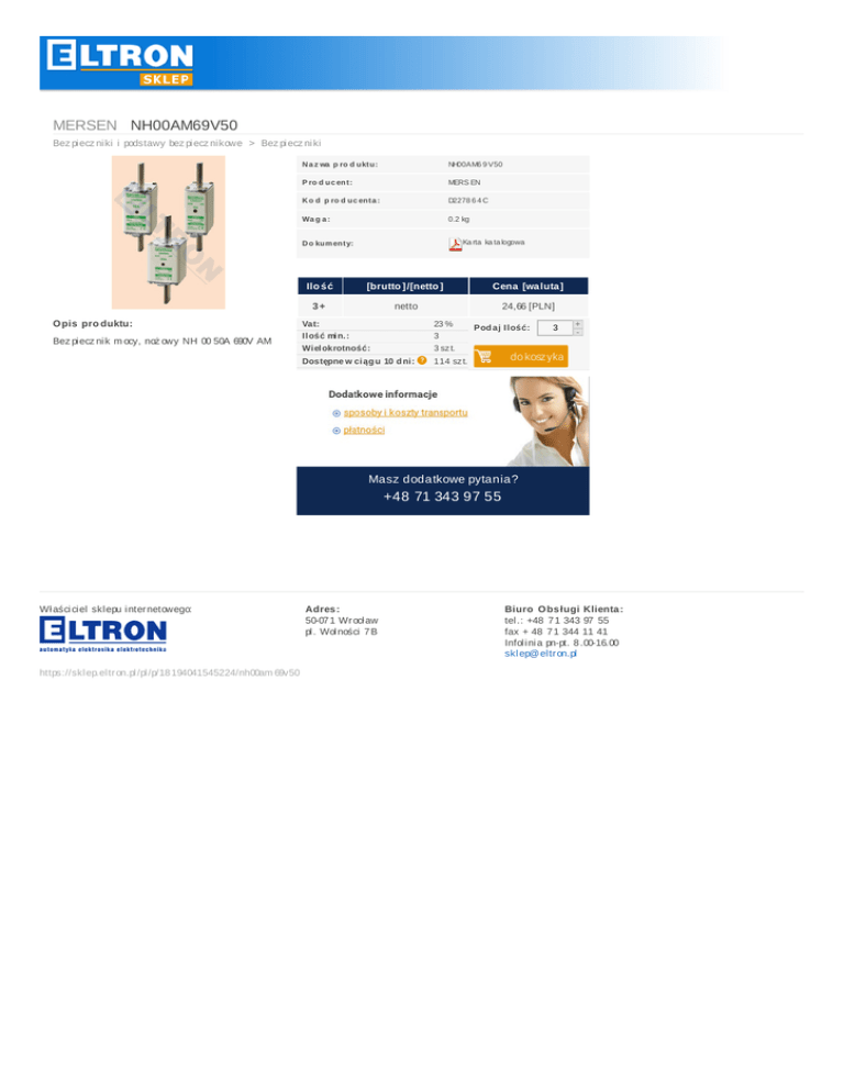 MERSENNH00AM69V50 Bez pi ecz ni ki i podstawybez pi ecz ni kowe > Bez pi ecz ni ki N a z wa p ro d u ktu : NH00AM6 9 V50 P ro d u c en t: MERS EN K o d p ro d u c en ta : D2278 6 4 C Wa g a : 0.2kg Ka rta ka ta logowa D o ku m en ty: O pis pro duktu: Bez pi ecz ni km ocy,noż owyNH0050A690VAM Ilo ś ć [brutto ] /[netto ] Cena [wa luta ] 3+ netto 24,66[PLN] Vat: Ilośćmin.: Wielokrotność: 23% 3 3sz t. Dostępnewciąg u 10d ni: 114sz t. Pod ajIlość: 3 + - dokosz yka Maszdodatkowepytania? +48713439755 Wł aści ci el skl epui nter netowego: https://skl ep.el tr on.pl /pl /p/18 194041545224/nh00am 69v50 Adres : 50-07 1Wr ocł aw pl .Wol ności 7 B Biuro O bs ługiKlienta : tel .:+48 7 134397 55 fax+48 7 13441141 Infol i ni apn-pt.8 .00-16.00 skl ep@ el tr on.pl