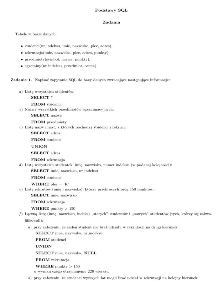 Podstawy SQL Zadania