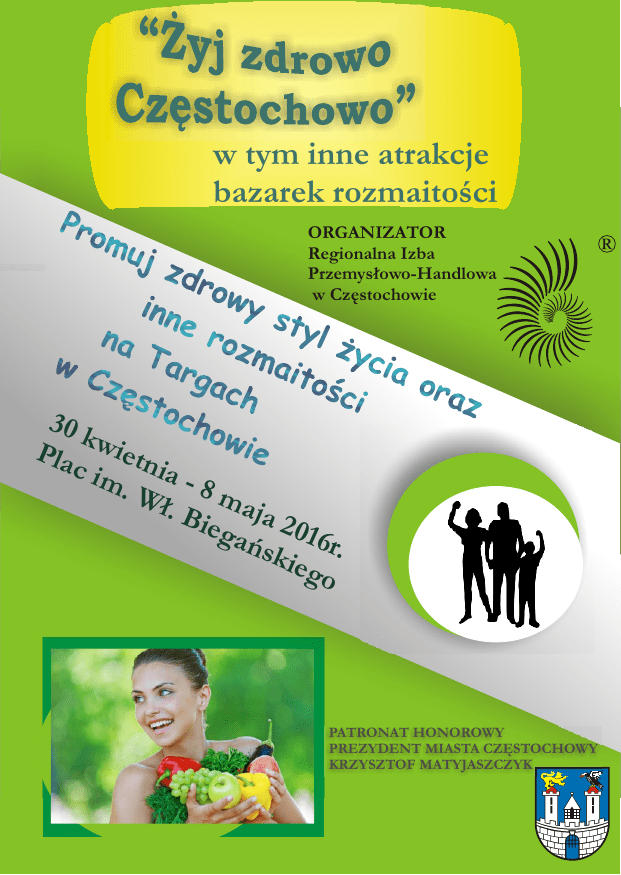 w tym inne atrakcje bazarek rozmaitości ORGANIZATOR Regionalna Izba Przemysłowo-Handlowa w Częstochowie 30 k Pla wietn c im i a .W 8m ł. B aja ieg 2 ańs 016r. kie go PATRONAT HONOROWY PREZYDENT MIASTA CZĘSTOCHOWY KRZYSZTOF MATYJASZCZYK Regionalna Izba Przemysłowo-Handlowa w Częstochowie we współpracy z Agencją Eventową “MASTER” z Wrześni zaprasza do udziału w imprezie wystawienniczo-targowej pn. “Żyj zdrowo Częstochowo” Targi pn. “Żyj zdrowo Częstochowo” są atrakcyjną propozycją dla wszystkich, którzy chcą promować zdrowy styl życia, zaprezentować innym jak dbać o swoje zdrowie, aktywnie spędzić czas i nie tylko. • Jeśli czerpiesz z natury to co najlepsze, a przy tym troszczysz się o środowisko, • Wiesz jak dbać o zdrowie, • Promujesz najnowsze trendy związane ze zdrowym stylem życia, • Jesteś producentem ekologicznych i naturalnych materiałów. Zaprezentuj swoją ofertę na częstochowskich targach. Dla wystawców mamy specjalną ofertę. 100 stoisk wystawowych Jest to pierwsza z cyklu planowanych imprez. Kolejne będą odbywały się w miastach i gminach z zasięgu działania RIPH w Częstochowie m.in. Kłobucku, Myszkowie, Zawierciu, Lublińcu, Koziegłowach, Radomsku i wielu innych miejscowościach. Zapraszamy producentów żywności ekologicznej, sprzętu do ćwiczeń oraz produktów przyjaznych dla środowiska do udziału w Targach. REGIONALNA IZBA PRZEMYSŁOWO-HANDLOWA W CZĘSTOCHOWIE www.riph.czest.pl - zakładka Targi Częstochowskie Aleja NMP 24 lok.5; 42-202 Częstochowa; tel. 34 344 82 58; [email protected]
