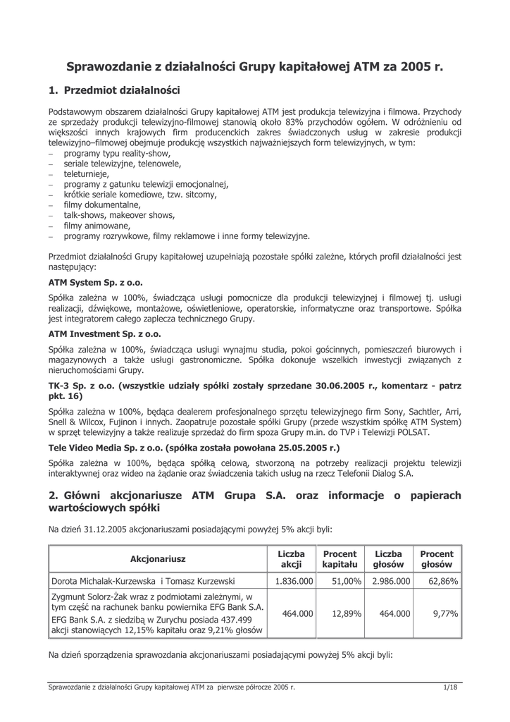 RS 2005 Sprawozdanie z dzia³alnoœci
