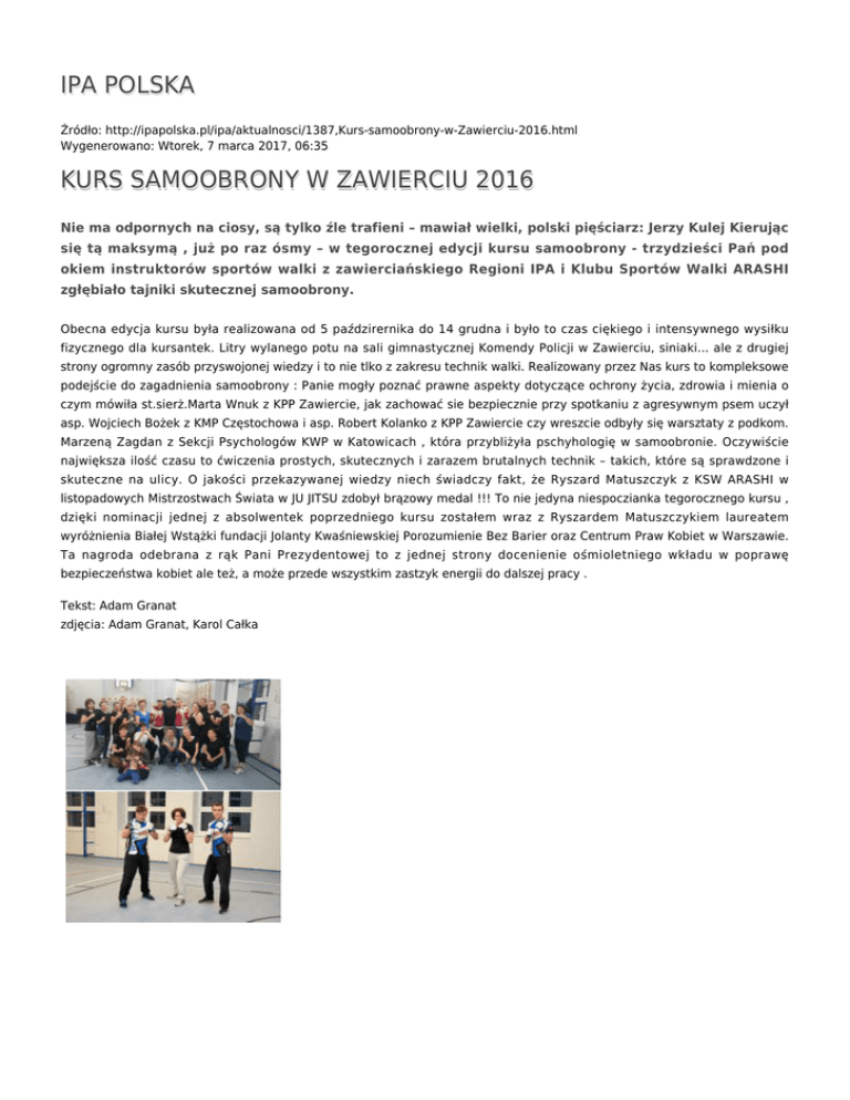 IPA POLSKA KURS SAMOOBRONY W ZAWIERCIU 2016