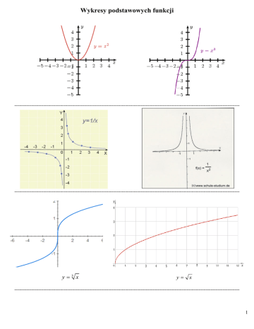 Wykresy podstawowych funkcji ------------------------------------------------------------------------------------------------------------------------------------ ------------------------------------------------------------------------------------------------------------------------------------ y=3 x y= x ------------------------------------------------------------------------------------------------------------------------------------ 1 1 y=e y=2 y= 2 -----------------------------------------------------------------------------------------------------------------------------------x x x y=logx y=lnx ------------------------------------------------------------------------------------------------------------------------------------ y = log 2 x y = log 1 x 2 ------------------------------------------------------------------------------------------------------------------------------------ 2 ------------------------------------------------------------------------------------------------------------------------ ------------------------------------------------------------------------------------------------------------------------------------ Linia czerwona ciągła - f(x) = arcsin(x) ; linia niebieska przerywana - f(x) = arccos(x) ------------------------------------------------------------------------------------------------------------------------ 3 Linia czerwona ciągła - f(x) = arctg(x) ; linia niebieska przerywana - f(x) = arcctg(x) ------------------------------------------------------------------------------------------------------------------------ linia czerwona - f(x) = chx; linia czerwona - f(x) = cthx; linia niebieska - f(x) = shx; linia niebieska - f(x) = thx. -----------------------------------------------------------------------------------------------------------------------Wykres funkcji y=1/(1+x^2) 1,1 1,0 0,9 0,8 0,7 Y 0,6 0,5 0,4 0,3 0,2 0,1 0,0 -0,1 -12 -10 -8 -6 -4 -2 0 2 4 6 8 10 12 X 4