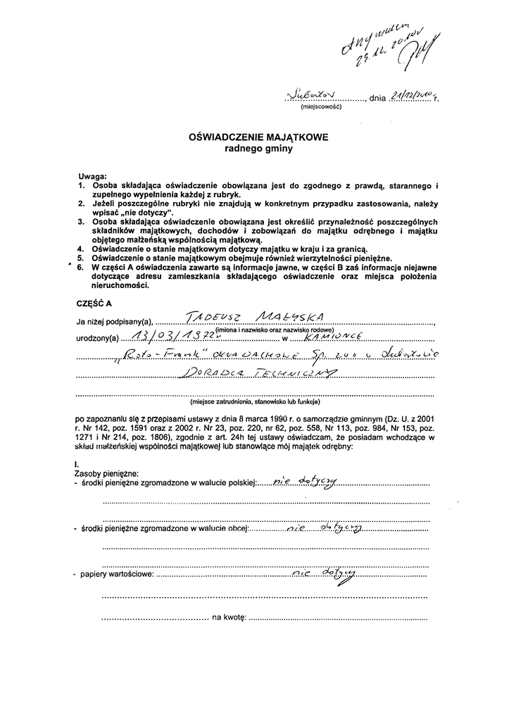3. Osoba skladajaca oswiadczenie obowiazana jest okreslic przynaleznosc poszczególnych