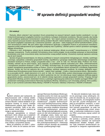 W sprawie definicji gospodarki wodnej