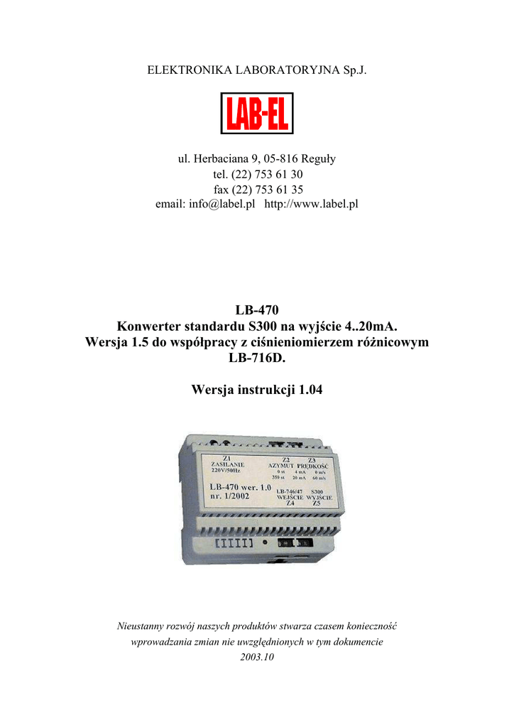 LB-470 Konwerter standardu S300 na wyjście 4..20mA. Wersja 1.5