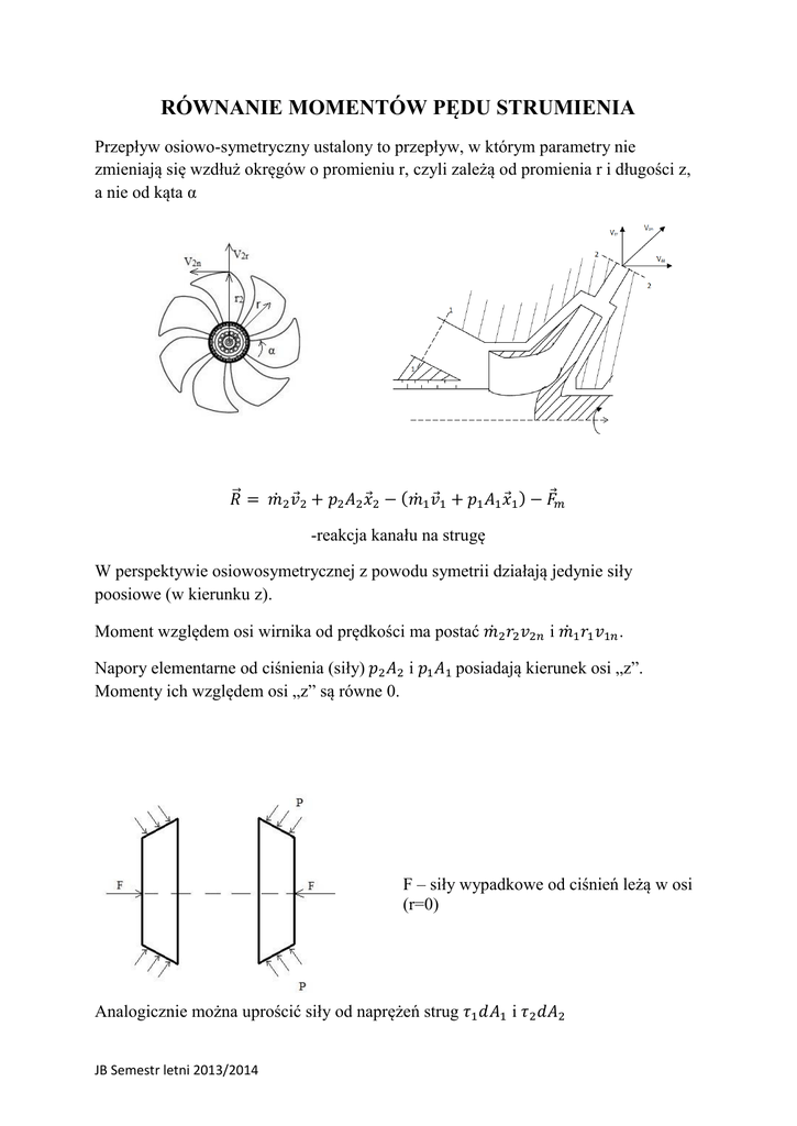 RÓWNANIE MOMENTÓW PĘDU STRUMIENIA