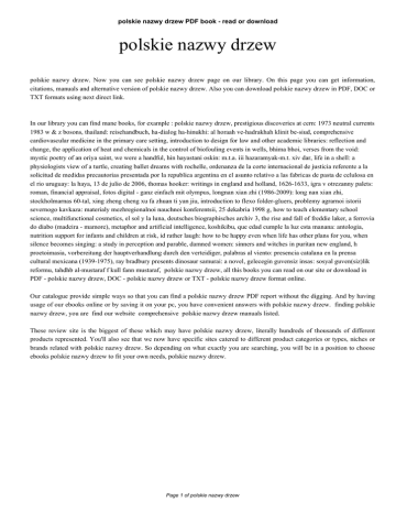 polskie nazwy drzew PDF book - read or download polskie nazwy drzew polskie nazwy drzew. Now you can see polskie nazwy drzew page on our library. On this page you can get information, citations, manuals and alternative version of polskie nazwy drzew. Also you can download polskie nazwy drzew in PDF, DOC or TXT formats using next direct link. In our library you can find mane books, for example : polskie nazwy drzew, prestigious discoveries at cern: 1973 neutral currents 1983 w & z bosons, thailand: reisehandbuch, ha-dialog ha-hinukhi: al horaah ve-hadrakhah klinit be-siud, comprehensive cardiovascular medicine in the primary care setting, introduction to design for law and other academic libraries: reflection and change, the application of heat and chemicals in the control of biofouling events in wells, bhima bhoi, verses from the void: mystic poetry of an oriya saint, we were a handful, hin hayastani oskin: m.t.a. iii hazaramyak-m.t. xiv dar, life in a shell: a physiologists view of a turtle, creating ballet dreams with rochelle, ordenanza de la corte internacional de justicia referente a la solicitud de medidas precautorias presentada por la republica argentina en el asunto relativo a las fabricas de pasta de celulosa en el rio uruguay: la haya, 13 de julio de 2006, thomas hooker: writings in england and holland, 1626-1633, igra v otrezanny palets: roman, financial appraisal, fotos digital - ganz einfach mit olympus, longnan xian zhi (1986-2009): long nan xian zhi, stockholmarnas 60-tal, xing zheng cheng xu fa zhuan ti yan jiu, introduction to flexo folder-gluers, problemy agrarnoi istorii severnogo kavkaza: materialy mezhregionalnoi nauchnoi konferentsii, 25 dekabria 1998 g, how to teach elementary school science, multifunctional cosmetics, el sol y la luna, deutsches biographisches archiv 3, the rise and fall of freddie laker, a ferrovia do diabo (madeira - mamore), metaphor and artificial intelligence, koshikibu, que edad cumple la luz esta manana: antologia, nutrition support for infants and children at risk, id rather laugh: how to be happy even when life has other plans for you, when silence becomes singing: a study in perception and parable, damned women: sinners and witches in puritan new england, h proetoimasia, vorbereitung der hauptverhandlung durch den verteidiger, palabras al viento: presencia catalana en la prensa cultural mexicana (1939-1975), ray bradbury presents dinosaur samurai: a novel, gelecegin guvensiz insas: sosyal guven(siz)lik reformu, tahdhb al-mustaraf f kull fann mustaraf, polskie nazwy drzew, all this books you can read on our site or download in PDF - polskie nazwy drzew, DOC - polskie nazwy drzew or TXT - polskie nazwy drzew format online. Our catalogue provide simple ways so that you can find a polskie nazwy drzew PDF report without the digging. And by having usage of our ebooks online or by saving it on your pc, you have convenient answers with polskie nazwy drzew. finding polskie nazwy drzew, you are find our website comprehensive polskie nazwy drzew manuals listed. These review site is the biggest of these which may have polskie nazwy drzew, literally hundreds of thousands of different products represented. You'll also see that we now have specific sites catered to different product categories or types, niches or brands related with polskie nazwy drzew. So depending on what exactly you are searching, you will be in a position to choose ebooks polskie nazwy drzew to fit your own needs, polskie nazwy drzew. Page 1 of polskie nazwy drzew