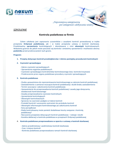 SZKOLENIE Kontrola podatkowa w firmie - nexum