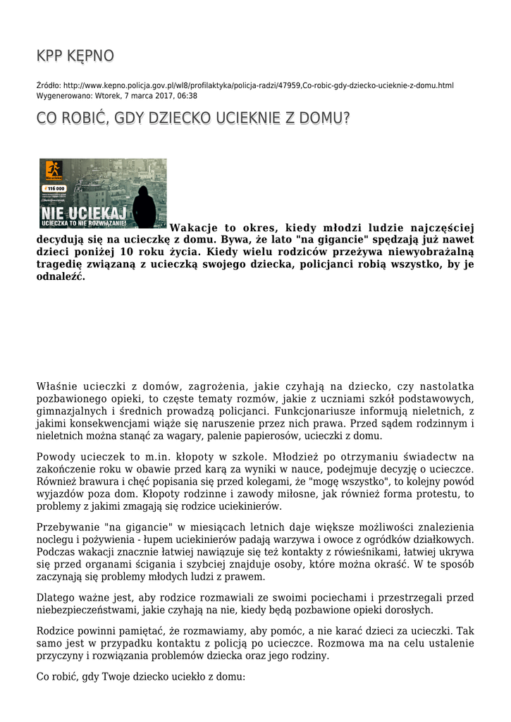 KPP KĘPNO CO ROBIĆ, GDY DZIECKO UCIEKNIE Z DOMU?
