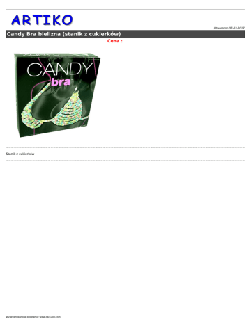 Utworzono 07-03-2017 Candy Bra bielizna (stanik z cukierków) Cena : Stanik z cukierków Wygenerowano w programie www.oscGold.com