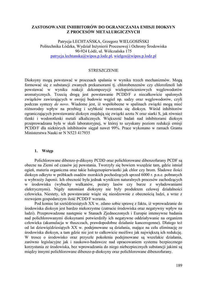 Zastosowanie inhibitorów do ograniczania emisji dioksyn z
