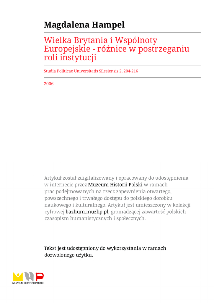 Magdalena Hampel Wielka Brytania i Wspólnoty Europejskie - różnice w postrzeganiu roli instytucji Studia Politicae Universitatis Silesiensis 2, 204-216 2006 M agdalena Hampel Wielka Brytania i Wspólnoty Europejskie różnice w postrzeganiu roli instytucji P rzy w iązan ie do P a rla m e n tu , k tó ry był in sty tu c ją w o ln ą ju ż w cza sach, kiedy re s z ta E uropy znajdow ała się pod panow aniem desp o ty z m u, je s t bardzo silne w W ielkiej B ry tan ii. Świadomość odm ienności, w pozytyw nym zn aczen iu tego słow a, pozo stała b ardzo siln a w śród społeczeństw a brytyjskiego n aw et wówczas, gdy w pozostałych p a ń stw ach rów nież zapanow ały reg u ły u stro ju dem okratycznego. Ś w ia domość ta je s t głównie o p arta n a w yjątkow ej h isto rii in sty tu cji b ry tyjskich, k tó re Zjednoczone K rólestw o p rag n ie zachować w n iezm ie nionym stan ie, a k tó re w y d ają się zagrożone przez proces in teg racji europejskiej. Liczni auto rzy p o tw ierd zają tę tezę: „N asza d u m a z sy s tem u rządów p a rla m e n ta rn y c h je s t w pełni u zasad n io n a”1. A ndre S ieg fried ta k podsum ow ał postaw ę Brytyjczyków: „Anglicy nie lu b ią n isz czyć instytucji: pozw alają raczej, aby k u rz na nich o siad ał”2. To p rzy w iązanie do narodow ych in sty tu cji i h isto rii odnajdujem y w słow ach M a rg a re t T h atch er, k tó re zostały w ypow iedziane podczas u ro czy sto ści z okazji rocznicy Rewolucji F rancuskiej: „Rewolucja F ran cu sk a była u to p ijn ą p ró b ą obalenia tradycyjnego p o rząd k u - k tó ry z pew nością m iał liczne niedoskonałości - w im ię ab strak c y jn y ch idei p różnych in te le k tu a listó w i nie przez p rzy p ad ek , ale przez słabość i z łą wolę obróciła się w czystki, zbiorow e m ordy i wojnę. [...] W p rz e c iw ie ń stw ie do niej an g ielsk a trad y cja wolności była coraz siln iejsza z b ie giem czasu: jej główne cechy to ciągłość, poszanow anie p raw a i zm ysł ' L. A m e ry: T h ou g h ts on the C o nstitu tion . Oxford 1964, s. 10. 2A. S i e g f r i e d : L'Angleterre a u j o u r d ’hui. P a ris 1924. s. 316. Magdalena Hampel: Wielka Brytania i Wspólnoty. 205 rów nowagi, czego przy k ład em może być »Rewolucja W spaniała« z 1688 ro k u ”3. P olityka S tu artó w była bardzo n ie p o p u larn a i w ko n sek w en cji doprow adziła do p rzew ro tu politycznego i objęcia tro n u przez Wil h elm a III O rańskiego, k tó ry zapew nił, że będzie dążył do zab ezp ie czenia religii p ro testan ck iej, wolności, w łasności, wolnego p arla m e n tu i o b alen ia ab so lu ty zm u . To w yd arzen ie n azw an o w łaśn ie „G lorious R ev o lu tio n ”. P rezen tu jąc tę opinię, M a rg aret T h atch er w pisuje się w n u r t m y ślow y E d m u n d a B u rk e ’a k ry ty k u ją c y rew olucję f r a n c u s k ą poprzez p rzeciw staw ienie jej stopniow ej ewolucji trad y cji K onstytucji an g iel skiej: „Widzimy, że od M agna C a rta [1215 r.] do D ek laracji P raw [Bill o f Rights, 1689 r.] n a sz a K onstytucja zaw sze p o tw ierd zała i broniła naszy ch wolności, będących dziedzictw em naszy ch przodków i które my z kolei przekażem y naszym dzieciom; s ą to dobra należące do ludu tego k ró le s tw a ”4. P e te r W. P re s to n p isze o „ideologii n ieid eo ło g iczn ej” po w stałej w k u ltu rz e politycznej W ielkiej B ry tan ii, w opozycji do k o n ty n en tu , a w szczególności do F ran cji. W angielskiej k u ltu rz e politycznej nie zn ajd u jem y u n iw ersaln e g o pow ołania lub k o n stru k c ji ideologicznej: „Ideologia oficjalna Zjednoczonego K ró lestw a to sposób, w ja k i sy s tem się p rzed sta w ia, sk ład ając się ze zbioru idei, k tó re w yszczegól n ia ją i c eleb ru ją w yjątkow ość W ielkiej B ry tan ii. W przeciw ieństw ie do roszczeń ró ż n o ra k ic h p rojektów p o litycznych będących r e z u lta tem m odernizm u kulturow ego, oficjalna ideologia Zjednoczonego K ró lestw a czerpie sw ą legitym ację z h isto rii p ań stw a, a bardziej dokład nie ze swojej k lasy rządzącej. J e s t to ideologia nieideologiczna, k tó ra opiera się na ciągłości i ewolucji, obowiązku i posłuszeństw ie, i na idei w zm ac n ian ia d o b ro b y tu ”5. B rytyjscy przeciw nicy in teg racji eu ro p ej skiej w y k o rzy stali tę m yśl, u za sa d n ia ją c sw ą negację tego procesu. P rzykład em może tu być przem ów ienie Enocha Pow ella, eu ro scep ty ka, członka p a rtii konserw atyw nej, zap rezen to w an e w Lyonie w 1971 roku, w którym u z a sa d n ia on odrzucenie idei in teg racji oraz tra n s fe ru su w eren n o ści do zg ro m ad zen ia i inn ych in sty tu c ji eu ropejskich. „W asze zgrom adzenia, w przeciw ieństw ie do P a rla m e n tu b ry ty jsk ie go, pow stały w sk u tek uchw alanych aktów politycznych i to w w ięk szości aktów całkiem niedaw nych. Z atem pow ołanie do życia nowej, :iM. T h a t c h e r : The D o w n i n g S treet Years. L ondon 1993, s. 753. 4 E. В u г к e: Reflections on the Revolution in France. London 1790; cyt. za: A. M o r · V a n. J.-F . G o u r n a y, F. L e s s a y : H isto ire d es idées d a n s les îles B r ita n n iq u e s . P aris 1996, s. 208. P.W. P r e s t o n : Europe. D em ocracy a n d the D issolution o f Britain. An E ssa y on the Issue o f E u ro p e in U K P u b lic Discourse. D a rtm o u th 1994, s. 2 1 -2 2 . 206 Stosunki m iędzynarodow e niepodległej in sty tu cji je s t dla w as sp ra w ą zw ykłą, podczas gdy nam w ydaje się to rzeczą dziw ną, by nie powiedzieć niep o jętą”6. W W ielkiej B ry tan ii nie m a tak iej konstytucji, ja k w innych p a ń stw ach Europy, gdzie je s t to a k t no rm aty w n y o ch a ra k te rz e n a d rz ę d nym w sto su n k u do innych aktów, b ra k tu ta j kodyfikacji p raw a. Nie oznacza to je d n ak , że W ielka B ry ta 