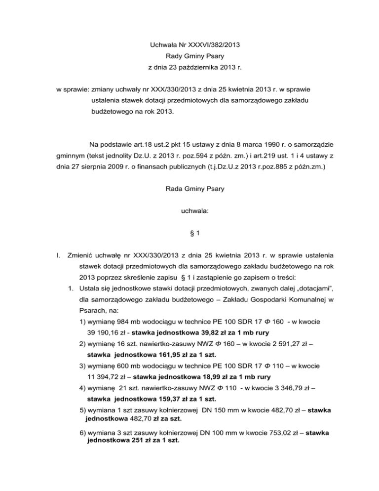Uchwała Nr XXXVI/382/2013 Rady Gminy Psary z dnia 23