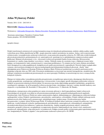przygotowanie i wydanie Atlasu Wyborczego Polski. W kolejnych działach atlasu omówione zostanie tło polityczne i nastroje