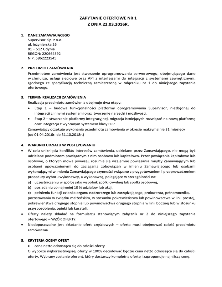 zapytanie ofertowe nr 1 z dnia 22.03.2016r.