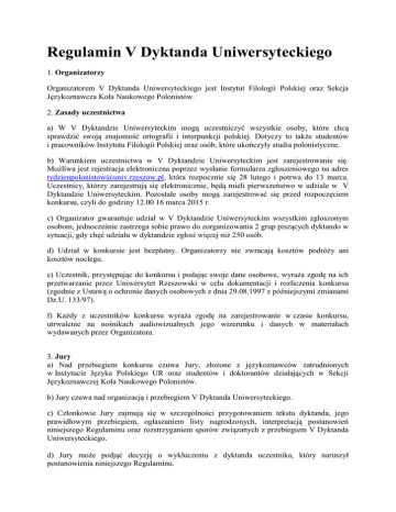 Regulamin V Dyktanda Uniwersyteckiego
