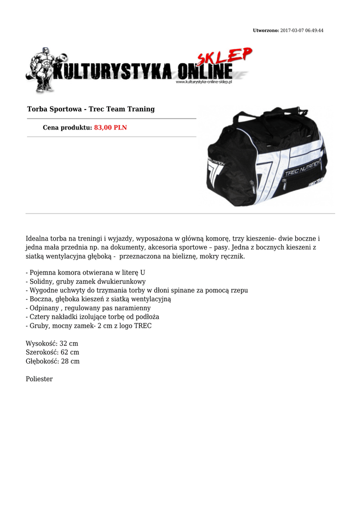 Torba Sportowa - Trec Team Traning - Kulturystyka-Online