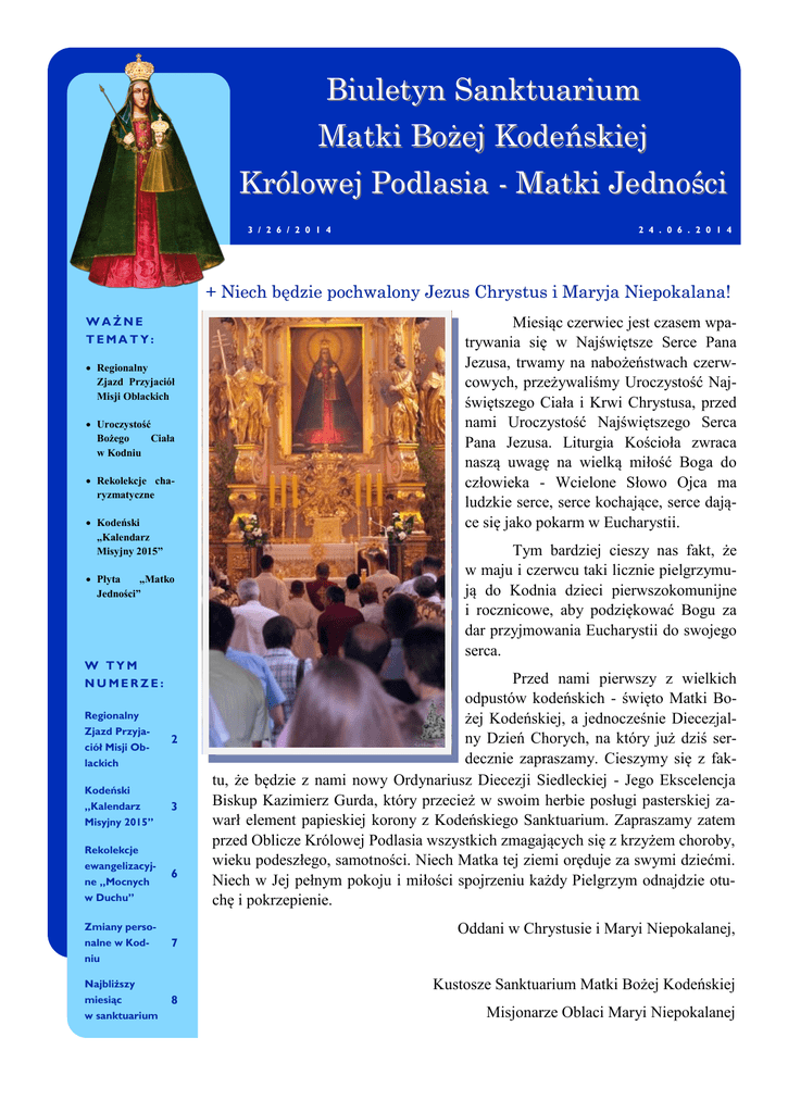 Biuletyn Sanktuarium Matki Bożej Kodeńskiej Królowej Podlasia