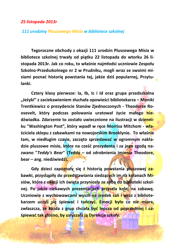 25 listopada 2013r 111 urodziny Pluszowego Misia w bibliotece