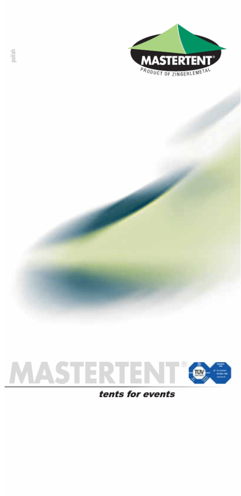 polish Zalety MASTERTENT® Korzyści ze składanej, jednoczęściowej, trwałej konstrukcji. < 15 sec. < 30 sec. * Namioty MASTERTENT® są produkowane zgodnie z najwyższymi standardami przez Zingerlemetal w Południowym Tyrolu (Włochy). Stała kontrola jakości gwarantuje wysoką jakość. Ponadto stale podnosimy poziom naszych usług poprzez rozwój naszego produktu. 33 mm 2 mm 40 mm 2 mm d[m 2 • Bez konieczności • Dostępne dwie wersji przekroju zdejmowania dachu • Rozkładany i składany bez użycia jakichkolwiek narzędzi • Obszerne wnętrze bez środkowej podpory • Jednolita konstrukcja bez odłączanych części • Rozładany bez technicznych umiejętności • Nie potrzeba pozwoleń budowlanych, aby go rozstawić • Po złożeniu łatwy w przechowywaniu profili konstrukcyjnych 33 i 40 mm • Łatwy montaż w bardzo krótkim czasie • Mała powierzchnia potrzebna do składowania w pozycji pionowej • Łatwy w transporcie • Nieograniczona liczba zastosowań • Skuteczny nośnik reklamy • Idealny do organizacji prezentacji i promocji • Maksimum efektu przy minimalnym koszcie • Łatwo regulowana wysokość zadaszenia Doskonały efekt przy każdym użyciu Dzięki pomysłowemu systemowi składania MASTERTENT® może być rozłożony i złożony w nie więcej niż 60 sekund. < 45 sec. MASTERTENT® uczyni twoja reklamę widoczną. < 60 sec. Modułowy system pozwala na dowolną aranżację. 3 Dodatkowe możliwości Inny, bo doskonały w detalach Ściany boczne Mocna taśma "rzep" Velcro na całej długości d[m Obciążniki 30 kg 7 kg Kółka transportowe i uniwersalny klip d[m Ogrzewanie i Oświetlenie Flagi i banery d[m 4 m Lady i nadruk Trwałe i mocne blaty można łatwo zamocować do namiotu za pomocą zwykłego śrubokręta.Dzięki prostym rozwiązaniom blaty sa gotowe do używania w krótkim czasie.Mogą być zamocowane z każdej strony. Składające się z kilku modułów blaty ,pakowane są w praktyczny pokrowiec,który umożliwia łatwy transport. Nadruk Możemy drukować cyfrowo dach,ściany boczne,banery i flagi w korzystnych cenach.Nasz dział graficzny z przyjemnością zaprojektuje Państwu wygląd Waszego Mastertenta,nawet jesli nie dysponujecie wlasnym projektem. Sciany moga byc podwojnie drukowane. 5 Kilka przykładów zastosowań. 6 Gwarancja i certyfikaty • Pięcioletnia gwarancja producenta na wady materiału w aluminiowej konstrukcji. • Dożywotnia gwarancja na korozję aluminiowej konstrukcji. • MASTERTENT® posiada certyfikat TUV (certyfikat produktu). • Tkanina, z której wykonany jest namiot MASTERTENT® jest trudnozapalna zgodnie z europejską norm1 EN 13501- 1:2002 and M2. • Namioty MASTERTENT® były testowane w tunelu aerodynamicznym przez znany instytut badawczy w zakresie stabilności przy różnej sile wiatru. Certyfikaty dostepne na życzenie. Wymiary zadaszenia i kolory Wymiary namiotów Waga* (wartości nominalne) 1,5 x 1,5 m 1,5 x 3 m 3x3m 4,5 x 3 m 6x3m 13,65 kg 19,15 kg 24,90 kg 32,10 kg 42,70 kg 3x3m 4,5 x 3 m 6x3m 2x4m 4x4m 6x4m 8x4m 38,20 kg 47,90 kg 63,90 kg 31,30 kg 49,20 kg 61,90 kg 81,00 kg Standardowa** Maksymalna Wym. nam. złoż. wys. wejścia wys. całkowita (szer. X dł. X wys.) profil o przekroju 33 mm 201 cm 249 cm 32 x 32 x 154 cm d[m 201 cm 313 cm 32 x 20 x 154 cm 201 cm 325 cm 32 x 32 x 154 cm 201 cm 325 cm 32 x 43 x 154 cm 201 cm 325 cm 32 x 54 x 154 cm profil o przekroju 40 mm 201 cm 325 cm 45 x 45 x 154 cm 201 cm 325 cm 45 x 60 x 154 cm 201 cm 325 cm 45 x 76 x 154 cm 215 cm 357 cm 45 x 30 x 200 cm 215 cm 388 cm 45 x 45 x 200 cm 215 cm 388 cm 45 x 60 x 200 cm 215 cm 388 cm 45 x 76 x 200 cm * Waga razem z pokrowcem, odciągami i śledziami ** Regulowana Zastrzegamy sobie prawo dokonania zmian technicznych w każdej chwili Standardowe kolory. Inne kolory dostępne na życzenie. 7 MASTERSTAND® MASTERFLAG® MASTERTENT® Royal MASTERTENT® Shop www.masterstand.com www.mastertent.com www.masterflag.net www.mastertent.com Landskroon Polska Sp. z o. o. Ul. Sikorskiego 60 • 67-200 Głogów • Polska Tel. +48 76 83 13 410 • Fax +48 76 83 13 411 [email protected] www.mastertent.com MT2006 - Zastrzegamy sobie prawo dokonania zmian technicznych w każdej chwili Popros o inne katalogi