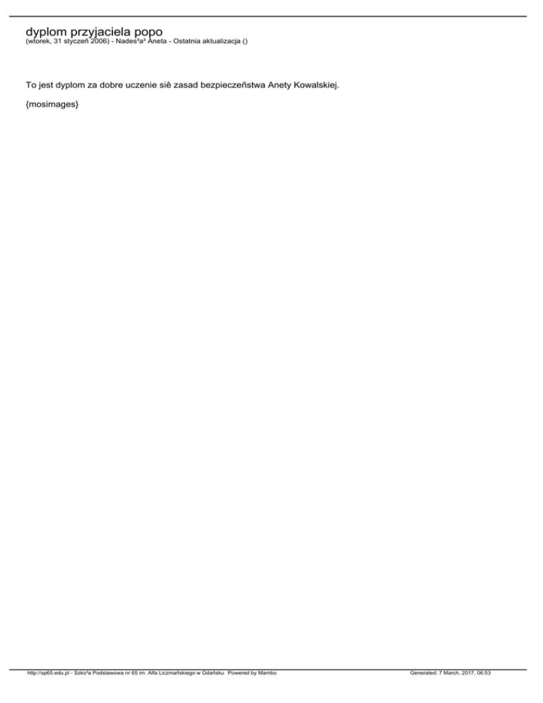 dyplom przyjaciela popo - Szkoła Podstawowa nr 65