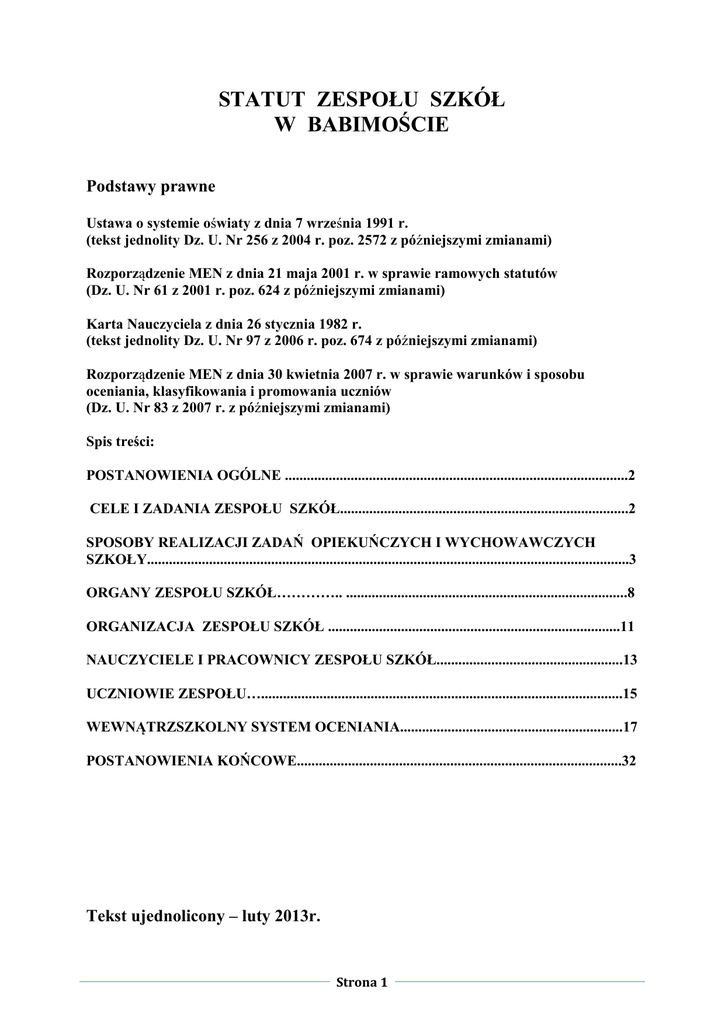STATUT ZESPOŁU SZKÓŁ W BABIMOŚCIE