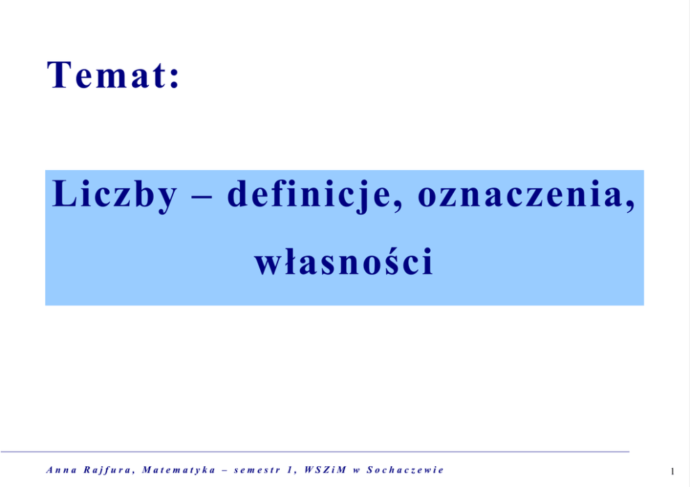 Temat: Liczby – definicje, oznaczenia, własności