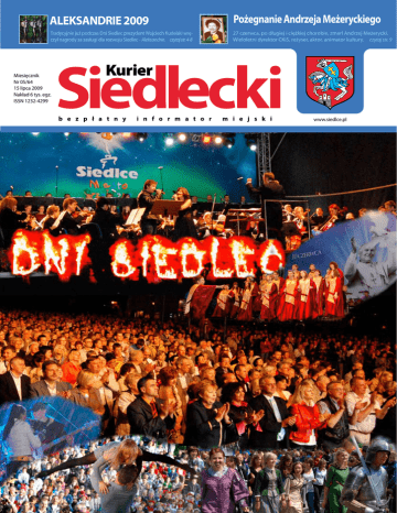ALEKSANDRIE 2009 Pożegnanie Andrzeja Meżeryckiego Tradycyjnie już podczas Dni Siedlec prezydent Wojciech Kudelski wręczył nagrody za zasługi dla rozwoju Siedlec - Aleksandrie. czytaj str. 4-8 27 czerwca, po długiej i ciężkiej chorobie, zmarł Andrzej Meżerycki. Wieloletni dyrektor CKiS, reżyser, aktor, animator kultury. czytaj str. 9 Miesięcznik Nr 05/64 15 lipca 2009 Nakład 6 tys. egz. ISSN 1232-4299 Kurier b e z p ł a t n y www.siedlce.pl i n f o r m a t o r m i e j s k i Kurier Siedlecki www.siedlce.pl Czerwiec/Lipiec 2009 1 DNI SIEDLEC 2009 2 Kurier Siedlecki Czerwiec/Lipiec 2009 www.siedlce.pl DNI SIEDLEC 2009 10. rocznicy Wizyty Apostolskiej Ojca Świętego Jana Pawła II Z udziałem duchowieństwa, parlamentarzystów, samorządowców oraz blisko 10 tysięcy wiernych na siedleckich błoniach odbyły się uroczystości 10. rocznicy wizyty apostolskiej w Siedlcach Ojca Świętego Jana Pawła II. Mszy świętej w miejscu papieskiej celebry sprawował Prymas Polski kard. Józef Glemp wraz z siedleckimi księżmi biskupami - Zbigniewem Kiernikowskim i Henrykiem Tomasikiem. W wygłoszonej homilii Prymas Polski nawiązał do wydarzeń sprzed dziesięciu lat. Przypomniał znaczące słowa, które padły podczas tamtego spotkania z ust Papieża Polaka: „Jeśli Bóg z nami, któż przeciwko nam?” Przypomniał symboliczny ołtarz z kłosami zboża i zaznaczył, że dziś przyszliśmy tutaj nie tylko po to, aby wspominać tamte chwile, ale także, aby ocenić wzrost ziarna, które wówczas Ojciec Święty rzucał na rozpalone i pełne otwartości serca wierzących. - Czy te słowa, dokonały wzrostu pośród nas. Jak ma się to dzisiaj, co osiągnęliśmy poprzez pouczenie i przez obecność Papieża w naszym biskupim mieście? - pytał kard. Glemp. Ksiądz Prymas przypomniał również, że Jan Paweł II skoncentrował swoją homilię wokół krzyża. - Krzyż, który jest znakiem sprzeciwu, dla tak wielu tutaj na Podlasiu był symbolem dumy i radości - stwierdził. Następnie nawiązał do obecności na uroczystościach rocznicowych Krzyża Światowych Dni Młodzieży. - Ileż on objechał krajów, ile konwww.siedlce.pl tynentów? Na ilu tysiącach ramion ludzi młodych i starszych, zwykłych i tych odpowiedzialnych za społeczeństwo, był niesiony? Dotykano rękami, brano na ramiona ten Krzyż, który bywa odrzucany nieraz. Bywa przyjmowany przez tych, którzy rozumieją znaczenie cierpienia, odwagi i męstwa w tym świecie, który musi iść przez różne doświadczenia i przeciwności.” - powiedział kard. Glemp. Dokładnie w południe 10 czerwca Znaki Światowych Dni Młodzieży: Krzyż i Ikona Matki Bożej Salus Populi Romani zostały wniesione do siedleckiej katedry, gdzie rozpoczęła się ich intronizacja. Mszy Świętej przewodniczył ks. bp Henryk Tomasik. Po południu ulicami Siedlec z katedry na błonia siedleckie przeszła procesja z Krzyżem ŚDM. W jej trakcie odbyła się proklamacja krzyża w różnych miejscach życia społecznego. Pierwszą stację zaplanowano na ul. Biskupa Świrskiego. Przy siedzibie RM Meditrans zebrani modlili się w intencji pracowników samorządowych, sądownictwa i całej władzy ustawodawczej.Druga stacja miała miejsce przy Akademii Podlaskiej na ul. Konarskiego. Tam odbyła się modlitwa w intencji całego środowiska akademickiego i szkolnego. Na trzeciej stacji przy siedzibie Komendy Miejskiej Policji na ul. Prusa zebrani pomodlili się za wszystkie służby mundurowe. Czwarta stacja znajdowała się przy Szpitalu Wojewódzkim a modlitwą otoczeni zostali chorzy i pracownicy służby zdrowia. Tuż przed wejściem na plac celebry zaplanowano na piątej stacji wierni modlili się o powołania kapłańskie i zakonne, a także za samych powołanych. Na zakończenie uroczystej Eucharystii, której oprawę muzyczną sprawowały wszystkie siedleckie chóry parafialne, słowo wygłosił biskup siedlecki Zbigniew Kiernikowski. Nawiązał on również do motywu Krzyża. Przypomniał, że w życiu i męczeństwie błogosławionych Męczenników Podlaskich zajaśniała tajemnica zwycięstwa Chrystusowego Krzyża. - W świetle i mocy tego Krzyża dokonuje się zmiana relacji do wszystkiego, co stanowi tworzenie życia wspólnotowego i to Krzyż Jezusa Chrystusa uzdalnia człowieka do wytrawiana w tych relacjach powiedział ksiądz biskup. - Obyśmy w naszym życiu umieli trwać w blasku Chrystusowego Krzyża w tych trudnościach, jakie są na naszej drodze i mogli być otoczeni promieniami słońca, które nie zna zachodu -dodał. Po Mszy świętej Krzyż został przekazany delegacji archidiecezji lubelskiej. Wieczorem na błoniach siedleckich odbył się wpaniały koncert muzyki chrześcijańskiej podczas którego wystąpili: chór Gospel Joy i zespół Malleo Reggae Rockers. Mimo padającego deszczu na koncercie bawiło się ponad tysiąc osób. Kurier Siedlecki Czerwiec/Lipiec 2009 3 ALEKSANDRIE 2009 Za zasługi dla Siedlec D ziesięć osób zostało w tym roku wyróżnionych honorową nagrodą Prezydenta Miasta Siedlce „Aleksandria”. Uroczystość wręczenia nagród odbyła się 12 czerwca w sali widowiskowej Centrum Kultury i Sztuki . Wzięło w niej udział wielu laureatów nagrody z lat poprzednich i znamienitych gości, m.in. biskup siedlecki Zbigniew Kiernikowski, posłowie Andrzej Halicki, Jacek Kozaczyński, Czesław Mroczek i Krzysztof Tchórzewski oraz delegacje zaprzyjaźnionych miast Siedlec: Dasing, Berdyczowa i Sabinova. Nagrody wręczył prezydent Siedlec Wojciech Kudelski w towarzystwie zastępców: Marty Sosnowskiej i Jarosława Głowackiego oraz wiceprzewodniczących Rady Miasta: Adama Bobryka i Stefana Somli. Tegorocznymi laureatami Aleksandrii zostali: biskup pomocniczy diecezji siedleckiej Henryk Tomasik, wojewoda mazowiecki Jacek Kozłowski, wieloletni burmistrz zaprzyjaźnionego z Siedlcami miasta Dasing Arnold Lorenz, rektor Akademii Podlaskiej prof. Antoni Jówko, asystent kościelny KSM i organizator p