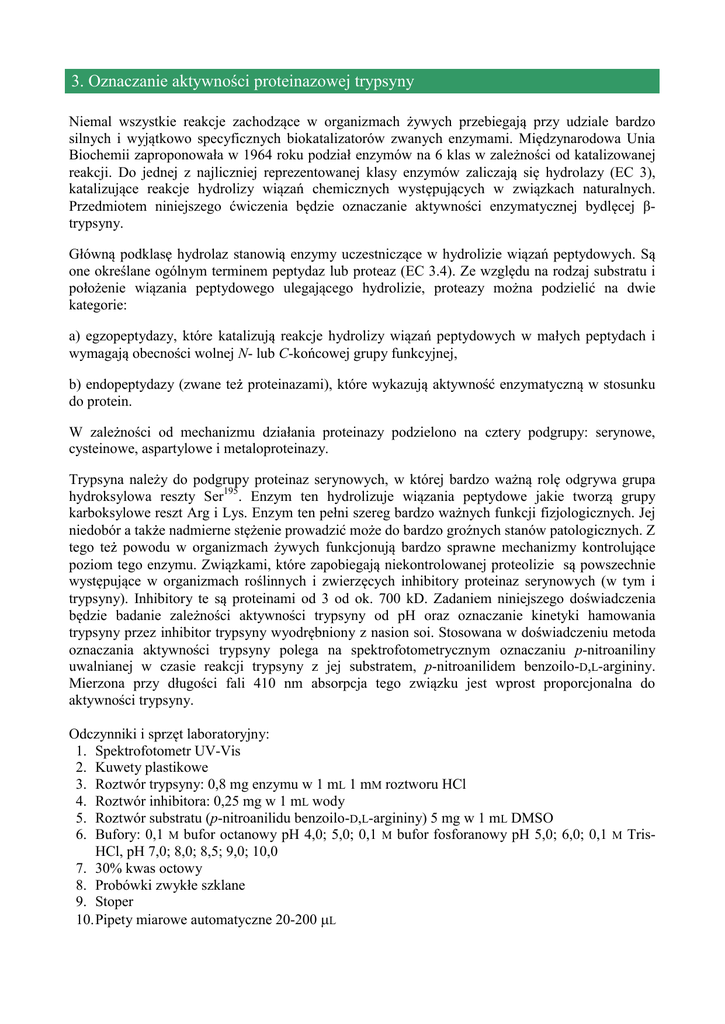 3. Oznaczanie aktywności proteinazowej trypsyny
