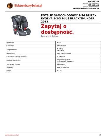FOTELIK SAMOCHODOWY 9-36 BRITAX EVOLVA 1-2