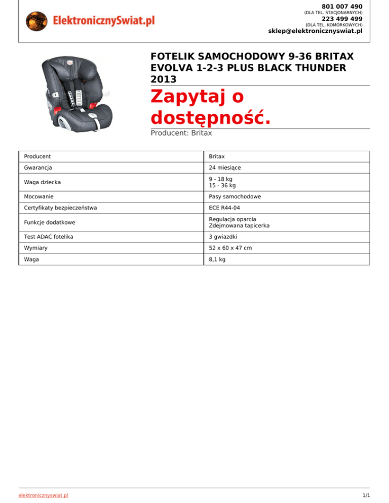 801 007 490 (DLA TEL. STACJONARNYCH) 223 499 499 (DLA TEL. KOMÓRKOWYCH) [email protected] FOTELIK SAMOCHODOWY 9-36 BRITAX EVOLVA 1-2-3 PLUS BLACK THUNDER 2013 Zapytaj o dostępność. Producent: Britax Producent Britax Gwarancja 24 miesiące Waga dziecka 9 - 18 kg 15 - 36 kg Mocowanie Pasy samochodowe Certyfikaty bezpieczeństwa ECE R44-04 Funkcje dodatkowe Regulacja oparcia Zdejmowana tapicerka Test ADAC fotelika 3 gwiazdki Wymiary 52 x 60 x 47 cm Waga 8,1 kg elektronicznyswiat.pl 1/1