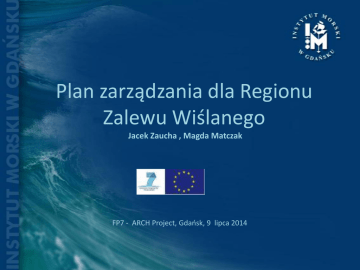 Plan zarządzania dla Regionu Zalewu Wiślanego Jacek Zaucha , Magda Matczak FP7 - ARCH Project, Gdaosk, 9 lipca 2014 Plany Różne plany zależnie od lokalnych warunków Model Externalities/pressures Re sp on Inter actio ns Re l „ou ation ter s w ” w ith orl d Natural System Ecosystem services Socioeconomic System se s Governance Lagoon System Human System Re „o lat ut ion er s ”w w or ith ld Możliwe różne reakcje na zagrożenia i presje Zamykanie firm trucicielis Zanieczyszczenia Ochrona środowiska Powstanie zielonego klastra Odpływ ludzi Napływ ludzi Wstęp Jest to program wskazujący najważniejsze kierunki rozwoju regionu Zalewu Wiślanego przy wykorzystaniu kapitał naturalnego jakim jest sam Zalew. Ideą przewodnią tego programu jest zarekomendowanie najbardziej obiecujących sposobów na połączenie kapitału społecznego, ludzkiego, ekonomicznego z kapitałem naturalnym w regionie Zalewu Wiślanego Wstęp Program dotyczy tylko polskiej części regionu. Nie ma jednoznacznie przyjętej delimitacji regionu Zalewu Wiślanego. Region ten najłatwiej wydzielić na zasadzie samoidentyfikacji. Stąd program dotyczy obszaru należącego do Komunalnego Związku Gmin Nadzalewowych, (KZGN). Obszar opracowania obejmuje Zalew i miasta Krynicę Morską, Braniewo i Elbląg, miasta i gminy Frombork, Tolkmicko i Nowy Dwór Gdański oraz gminy wiejskie: Stegna, Sztutowo i Elbląg. Nie należąca do KZGN gmina wiejska Braniewo została ujęta aby zapewnić porównywalność z wcześniejszymi dokumentami Wnioski Przeprowadzone analizy i dyskusje wskazują na potrzebę działań w następujących kierunkach: 1. Poprawa stanu kapitału naturalnego Zalewu Wiślanego. 2. Ukierunkowanie interwencji publicznej na wybrane finalne usługi ekosystemowe dostarczane przez Zalew. 3. Zdefiniowanie zakresu kompetencji i odpowiedzialności i za rozwój regionu Zalewu Wiślanego oraz mechanizmów tego rozwoju. 4.Stworzenie niezależnego mechanizmu oceny alternatywnych trajektorii rozwoju, wyboru najbardziej pożądanych z nich i ułatwiania zmian strukturalnych. Poprawa stanu kapitału naturalnego Zalewu Wiślanego 1.1.Opracowanie i wdrożenie Zalewo centrycznych norm w zakresie oczyszczania ścieków komunalnych i katalogu działań zmierzających do zmniejszenia napływu biogenów (i innych substancji szkodliwych) z rolnictwa i innych źródeł rozproszonych. Działanie to wymagałoby po pierwsze odpowiednich badań dotyczących zdolności absorpcyjnej biogenów i innych substancji szkodliwych przez zalew. Po drugie potrzebne byłoby na tej podstawie dokonanie zmian obwiązujących norm i innych działań prewencyjnych (bufory wzdłuż cieków wodnych, odłogowanie, zalesianie etc.). Po trzecie przeprowadzenie procesu społecznego zmierzającego do ich zaakceptowania przez samorządy lokalne i inne zainteresowane strony w tym ustalenia mechanizmów kompensacji ponoszonych przez nie strat (np. w ramach zalewowej Agendy 21 vide pkt. 1.4). Po czwarte konieczny byłby proces monitorowania wdrażania tych norm i działań remediacyjnych. Liderem w tym zakresie powinien być Urząd marszałkowski woj. warminskomazurskiego wraz z RZGW. Poprawa stanu kapitału naturalnego Zalewu Wiślanego 1.2.Monitoring stanu wód Zalewu nakierowany nie tylko na spełnianie wymogów UE ale pozwalający szukać odpowiedzi na pytania o skuteczność działań naprawczych. Monitoring taki wymagałby nie tylko poszerzenia bazy informacyjnej, zapewnienia stałych źródeł finansowania, ale również włączenia jego wyników w proces krytycznej analizy podejmowanych działań ochronnych. Co 2-3 lata powinny powstawać odpowiednie opracowania, a to z kolei wymagałoby ścisłej współpracy urzędów administracji publicznej (WIOŚ, Urzędy Marszałkowskie) i środowisk naukowych. Budżet administracji publicznej (krajowej, wojewódzkiej) powinien zapewnić fundusze na ten cel. W ostatecznym kształcie wyniki monitoringu powinny stać się stałym elementem procesu oceny i kształtowania rozwoju społecznogospodarczego regionu. Muszą one jednak wyjść (także odnośnie ich zakresu) poza wąskie ramy sektora ekologicznego w jakich się obecnie znajdują. U podstaw ich kształtowania powinny leżeć również zamysły rozwojowe Regionu a nie tylko normy UE. Poprawa stanu kapitału naturalnego Zalewu Wiślanego Opracowanie i podjęcie działań zmierzających do usuwania biogenów z toni Zalewu. Program taki mógłby np. obejmować uprawę i zbiór trzciny czy omułka przez społeczności lokalne. Wymagałoby to działań promocyjnych ze strony władz wojewódzkich (urzędy marszałkowskie), formalnych kontraktów między władzami wojewódzkimi a lokalnymi (których realizacja podlegałaby monitorowaniu) oraz zapewnienia ze strony władz wojewódzkich fachowego wsparcia i know-how, gdyż sam proces zbioru jest ekonomicznie opłacalny. Innym sposobem mogłoby być opracowanie planów wykorzystania wód roztopowych do zwiększania stopnia cyrkulacji wód w Zalewie jak to ma miejsce po stronie rosyjskiej. Liderem powinien być RZGW i Urząd Morski. Poprawa stanu kapitału naturalnego Zalewu Wiślanego 1.3.Zmiana podejścia społeczności lokalnej i wzrost zrozumienia znaczenia rozwojowego Zalewu i jego wód jako kapitału naturalnego. W obecnej perspektywie finansowej wzniesiono niezbędną infrastrukturę kanalizacyjną po polskiej stronie. Możliwość dalszej poprawy w wyniku tego typu inwestycji jest ograniczona. Teraz głównym problemem są źródła rozproszone i sposób zachowania mieszkańców regionu. Potrzebny jest całościowy program obejmujący stronę polską i rosyjską tzn. Agenda 21 dla Zalewu Wiślanego opracowany przez gminy, organizacje pozarządowe i zainteresowane strony. Inicjatorem takiego programu mógłby być KZGN a koszty pokryć program współpracy transgranicznej Polska Rosja. Wybrane finalne usługi ekosystemowe Zalewu Wiślanego 2.1. Plany przestrzenne obszaru wodnego Finalne usługi ekosystemo