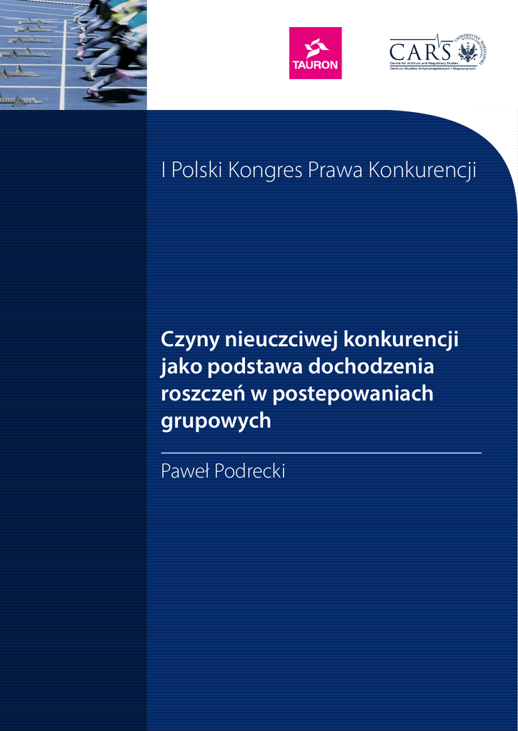 I Polski Kongres Prawa Konkurencji Czyny nieuczciwej konkurencji jako podstawa dochodzenia roszczeń w postepowaniach grupowych Paweł Podrecki I Polski Kongres Prawa Konkurencji Czyny nieuczciwej konkurencji jako podstawa dochodzenia roszczeń w postepowaniach grupowych Paweł Podrecki Draft Paper. Please do not quote Paweł Podrecki* Czyny nieuczciwej konkurencji jako podstawa dochodzenia roszczeń w postepowaniach grupowych Spis treści: I. Ochrona na podstawie czynów nieuczciwej konkurencji - ogólna charakterystyka w systemie prawa konkurencji II. Sprawy o dochodzenie roszczeń w postępowaniu grupowym - zagadnienia wybrane w związku z czynami nieuczciwej konkurencji I. Ochrona na podstawie czynów nieuczciwej konkurencji Czyny nieuczciwej konkurencji opisane w ustawie w sposób generalny w klauzuli zawartej w art.3 ust.1 ustawy o zwalczaniu nieuczciwej konkurencji (dalej; „uznk”) oraz w sposób szczegółowy w przepisach art.5 – art.17 uznk są przykładem ukształtowania ochrony deliktowej, która wywodzi się z konstrukcji czynu niedozwolonego. Odpowiednie przepisy uznk przewidujące ochronę dla oznaczeń lub wyrobów, które są nieuczciwie wykorzystywane lub naśladowane mogą stwarzać podobnie skuteczne środki ochrony, jak ochrona oparta na prawach własności intelektualnej (por.art.5 i 10 oraz art.13 uznk). Szczególnie wyraźnie widać to na przykładzie ochrony oznaczeń geograficznych chronionych w uznk i pwp (por.art. 8 i 9 uznk). Ustawa o zwalczaniu nieuczciwej konkurencji jest również podstawą jej komplementarnego zastosowania zwłaszcza, gdy przepisy prawa własności przemysłowej nie przewidują regulacji dla tych dóbr niematerialnych, które nie spełniają ustawowych przesłanek ochrony. Dotyczy to w szczególności: nieopatentowanych wynalazków, niezarejestrowanych znaków towarowych, niechronionych wzorów i know-how czyli tajemnicy przedsiębiorstwa (por.art.11 uznk). Odrębną naturę mają natomiast przepisy uznk, które mają za zadanie chronić pozycję przedsiębiorcy przed utrudnianiem dostępu na rynku. (art.15 uznk), nieuczciwą sprzedażą (art.17 uznk) a także regulacja w art.16 uznk wyznaczająca granice uczciwej reklamy. Warto podkreślić na wstępie, że stosowanie prywatnoprawnych regulacji opartych na ocenie efektywnie działającej konkurencji w celu ochrony interesów gospodarczych ** Dr hab. WPiA UJ. 1 przedsiębiorców może być również realizowane obok regulacji publicznoprawnych wynikających z prawa ochrony konkurencji, a także ochrony praw konsumenta. Roszczenia, które są wymienione w art.18 uznk pozwalają wstrzymać niedozwolone zachowania sprawców czynów nieuczciwej konkurencji (roszczenia negatoryjne - zakazowe i o usunięcie skutków), a także prowadzić do kompensacji w związku z skutkami naruszeń (roszczenia o naprawienie szkody i zwrot bezpodstawnie uzyskanych korzyści). Ustawa o zwalczaniu nieuczciwej konkurencji zawiera również szczególne roszczenia zmierzające do przywrócenia stanu sprzed naruszenia za pomocą roszczeń publikacyjnych (roszczenie o złożenie odpowiedniego oświadczenia), a także środki zawierające element represji (roszczenie o zapłatę nawiązki). Należy również przypomnieć, że przepisy prawa nieuczciwej konkurencji nie są podstawą do stanowienia praw podmiotowych o charakterze wyłącznym i bezwzględnym. Przesłanki i treść praw własności intelektualnie mogą być określone tylko w drodze ustawowej, a sposób uzyskania ochrony zgodnie z uznk nie jest drogą do obejścia zamkniętego katalogu tych praw wynikającego z zasady numerus clausus. Źródło ochrony jakie wynika z uznk ma całkowicie różną naturę prawną niż prawa własności intelektualnej. Z tego powodu można próbować wyznaczać wewnętrzne granice ochrony w uznk przed zachowaniami w zależności od stopnia ich nieuczciwości. Prywatnoprawna droga ochrony interesów przedsiębiorców w uznk wyróżnia także ten model od rozwiązań publicznoprawnego prawa konkurencji, gdzie główną rolę odgrywa organ, którym jest Prezes Urzędu Ochrony Konkurencji i Konsumentów. Ustalenie odpowiedzialności cywilnoprawnej w konsekwencji naruszenia prawa ochrony konkurencji jest możliwe zgodnie z regułami private enforcement. O ile jednak odpowiedzialność cywilnoprawna uczestnika rynku w związku z naruszeniem zasad publicznoprawnego prawa konkurencji wiąże się z prejudycjalnym rozstrzygnięciem w zakresie ustalenia niedozwolonej praktyki ograniczającej konkurencję, to mechanizm odpowiedzialności w związku z popełnieniem czynu nieuczciwej konkurencji umożliwia określenie konsekwencji deliktu w płaszczyźnie relacji pomiędzy przedsiębiorcami lub ich klientelą. Ocena sposobu nieuczciwego postępowania przedsiębiorcy w uznk, w odróżnieniu od przesłanek wymaganych w prawie ochrony konkurencji rozszerza skalę oceny o zachowania, które nie naruszają interesu publicznego, ani też nie wymagają zajmowania kwalifikowanej pozycji rynkowej. Naruszenia przepisów uznk są zawsze związane z udowodnieniem nieuczciwości zachowania, które może mieć postać szczegółowo scharakteryzowaną w jednym z tzw. 2 nazwanych czynów nieuczciwej konkurencji lub opierać się na zastosowaniu klauzuli generalnej i wykładni pojęcia sprzeczności z prawem lub dobrymi obyczajami. Korzystanie z norm uznk może więc w danych okolicznościach wyrażać specyfikę naruszenia poprzez szczegółowy opis nieuczciwego zachowania, które są przesłankami deliktu. Naruszenie praw własności intelektualnej jest zdarzeniem polegającym na wkroczeniu w przysługująca wyłączność. Oznacza to, że w prawie własności intelektualnej nie ma szczegółowych kryteriów pozwalających na przeprowadzenie oceny w stosunku do samego zachowania. Jeżeli sytuacja faktyczna będzie charakteryzowała się koniecznością analizy przesłanek nagannego zachowania, którego skutkiem jest naruszenie cudzego dobra lub chr