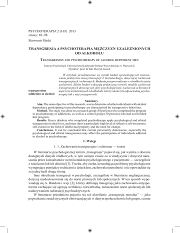 Transgresja a psychoterapia mężczyzn uzależnionych od