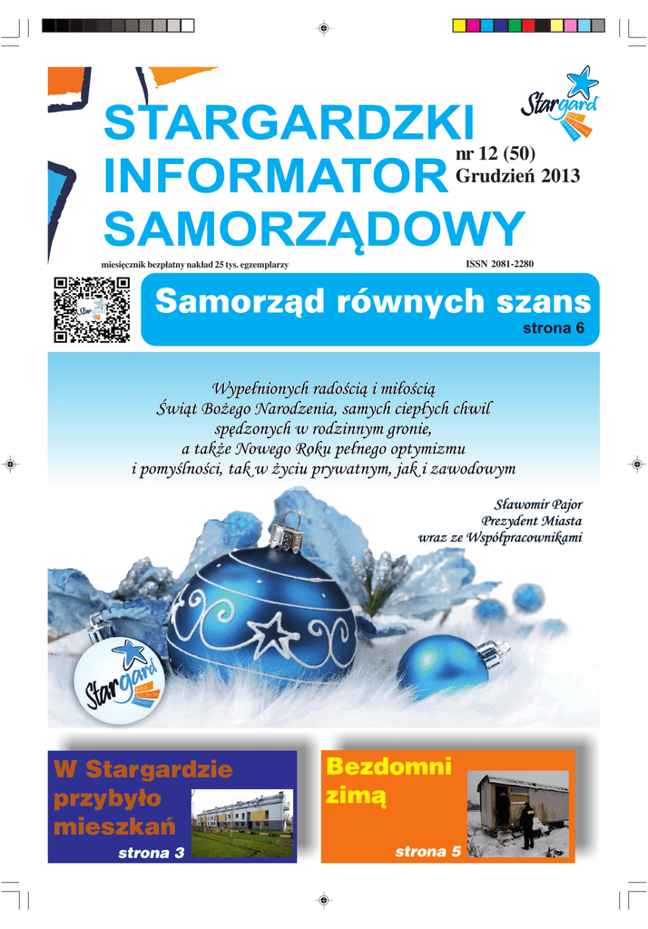 nr 12 (50) Grudzieñ 2013 ISSN 2081-2280 miesiêcznik bezp³atny nak³ad 25 tys. egzemplarzy W Stargardzie przyby³o mieszkañ strona 3 Bezdomni zim¹ strona 5 2 AKTUALNOŒCI Stargard bêdzie kontynuowa³ wspó³pracê z Niemcami Na zaproszenie Prezydenta S³awomira Pajora do naszego miasta przyjecha³ Peter Heise - prezes Zwi¹zku Komunalnego Europaregion Pomerania w Löcknitz oraz przedstawiciele Neubrandenburga, Ueckermünde i Stralsundu. G³ównym celem spotkania by³o ustalenie kierunków dalszej wspó³pracy przy nowej perspektywie pozyskiwania dofinansowañ unijnych – na lata 2014 – 2020. Ju¿ po wstêpnych rozmowach z ka¿dym z partnerów, zarysowa³y siê pierwsze typy projektów, które mog³yby zostaæ skierowane do realizacji. Nied³ugo rozpocznie siê cykl spotkañ indywidualnych przedstawicieli Stargardu z ka¿dym z partnerów. Najbli¿sze zaplanowano w Löcknitz na prze³omie roku. racyjnego Celu 3 „Europejska Wspó³praca Terytorialna” – „Wspó³praca transgraniczna” krajów Meklemburgia - Pomorze Przednie/Brandenburgia i Rzeczpospolita Polska (Województwo Zachodniopomorskie) 2007 - 2013. Ca³kowita wartoœæ zadania 2 259 257,00 z³ (wk³ad w³asny: 338 888,55 z³). Projekt wspó³finansowany przez Uniê Europejsk¹ z Europejskiego Funduszu Rozwoju Regionalnego w ramach Regionalnego Programu Operacyjnego Województwa Zachodniopomorskiego na lata 2007 - 2013. Ca³kowita wartoœæ zadania: 4 994 070,00 z³ (wk³ad w³asny: 3 305 260,00 z³). 5. „Remont Bramy Portowej”. Remont obiektu zosta³ dofinansowany w ramach 2. „Dwa miejsca z histori¹ - przebudowa, remont i rozbudowa obiektu Bastei w Stargardzie Szcze- Programu Operacyjnego „Dziedzictwo kulturowe” ciñskim oraz tworzenie funkcji muzealnych w priorytetu „Rewaloryzacja zabytków nieruchomych i ruchomych” ze œrodków Ministerstwa Kultury i Dziedzictwa Narodowego, pochodz¹cych z bud¿etu pañstwa. Ca³kowita wartoœæ zadania: 1 127 142,08 z³ (wk³ad w³asny 977 142,08 z³). 6. „Przebudowa p³yty Rynku Staromiejskiego w Stargardzie Szczeciñskim w celu podniesienia atrakcyjnoœci turystycznej Szlaku Klejnot Pomorza”. Podstawowym celem projektu by³a poprawa atrakcyjnoœci i funkcjonalnoœci Rynku Staromiejskiego. W ramach projektu przebudowano p³ytê g³ówn¹ Rynku, zmieniono organizacjê ruchu w jego obrêbie, a tak¿e wykonano zagospodarowanie przestrzenne poprzez umieszczenie elementów ma³ej architektury. Ca³kowita wartoœæ zadania: 3 674 510,32 z³. (wk³ad w³asny: 2 025 647,32 z³). Ju¿ w przysz³ym roku rozpocznie siê rewitalizacja Prezydent S³awomir Pajor oraz Peter Heise (drugi od lewej), prezes Zwi¹zku Komunalnego Euroregion murów obronnych przy ul. Stra¿niczej i Sukienniczej. Pocz¹tek prac zaplanowano na kwiecieñ. Zakoñczenie Pomerania inwestycji ma nast¹piæ w po³owie 2015 roku. Projekt bêdzie polega³ na zabezpieczeniu przed Przy okazji wizyty w naszym mieœcie goœcie z Klasztorze Franciszkanów (840 m2) w NeubranNiemiec na w³asne oczy zobaczyli wszystkie zabyt- denburgu oraz Bastei (360 m2) w Stargardzie dalsz¹ degradacj¹ obiektów zabytkowych Szczeciñskiego Obszaru Metropolitalnego, wpisanych do kowe obiekty, które zosta³y wyremontowane w ra- Szczeciñskim". mach miêdzynarodowej wspó³pracy. Wniosek partnerski o dofinansowanie projektu rejestru zabytków, poprzez zrealizowanie prac konz³o¿ono we wspó³pracy z miastem Neubranden- serwatorskich, restauratorskich i robót budowlanych burg w ramach Programu Operacyjnego Celu 3 „Eu- przy murach obronnych. Zaplanowano wykonanie Przypomnijmy: Renowacje zabytków przeprowadzone od 2008 roku ropejska Wspó³praca Terytorialna” – „Wspó³praca przemurowañ zniszczonych i wypaczonych popoch³onê³y ponad 22 miliony z³otych (dok³adnie 22 transgraniczna” krajów Meklemburgia - Pomorze wierzchni muru, wsparcie konstrukcyjne jego frag631 385,55 z³). Nie mo¿na tak¿e pomin¹æ kolejnych Przednie/Branderburgia i Rzeczpospolitej Polskiej mentów, wype³nienie wszelkich szczelin i pustek prawie dwóch milionów z³otych, które do 2012 roku (Województwo Zachodniopomorskie) 2007 – 2013. oraz w³aœciwej izolacji od korony murów. DodatkoCa³kowita wartoœæ zadania: 10 073 099,98 z³ wo przeprowadzone bêdzie precyzyjne, nieingeruzosta³y przekazane w formie dotacji dla Parafii – z j¹ce w lico ceg³y oczyszczanie wszystkich partii muru, przeznaczeniem na remonty obiektów zabytkowych. (wk³ad w³asny: 3 137 321,84 z³). rekonstrukcja brakuj¹cych czêœci oraz kompleksoW roku 2013 na ten cel przekazane bêdzie dodatkowo ponad 200 tysiêcy z³otych. 3. „Remont murów obronnych przyleg³ych do we zabezpieczenie przeciwwilgociowe. Bramy Wa³owej w Stargardzie Szczeciñskim Prowadzone bêd¹ tak¿e prace budowlano – zabezpieczaj¹ce: Ci¹g³e starania zmierzaj¹ce do pozyskania po- (Etap II)”. Projekt wspó³finansowany przez Uniê Euro- - przy budynku Bastei I z fragmentem murów, mocy finansowej na renowacje zabytków, pozwalaj¹ na przeprowadzanie remontów z najwy¿sz¹ sta- pejsk¹ z Europejskiego Funduszu Rozwoju Regio- - przy budynku Bastei II, nalnego w ramach Regionalnego Programu Opera- - przy budynku Baszty Jeñców z fragmentem murannoœci¹. Oto, jak przedstawia siê lista zrealizowanych od 2008 cyjnego Województwa Zachodniopomorskiego na rów i kazamat¹. Wykonane zostanie m.in. zabezpieczenie poni¿ej teroku remontów, wraz z kosztami, które poch³onê³y: lata 2007 – 2013”. Ca³kowita wartoœæ zadania: 503 306,17 z³ renu oraz drena¿ i odwodnienie liniowe. Ca³kowita wartoœæ zadania: 1 750 000,00 z³ (wk³ad 1. „Bramy, które ³¹cz¹ - renowacja Bramy Wa³o- (wk³ad w³asny: 125 826,55 z³). w³asny: 437 500,00 z³). wej w Stargardzie Szczeciñskim oraz odbudo(PSt) 4. „Stargard Klejnot Pomorza - rewitalizacja wa Bramy M³yñskiej w Bernau”. Zdjêcie: UM Stargard Projekt realizowany w ramach Programu Ope- Ratusza Miejskiego w Stargardzie Szczeciñskim”. 