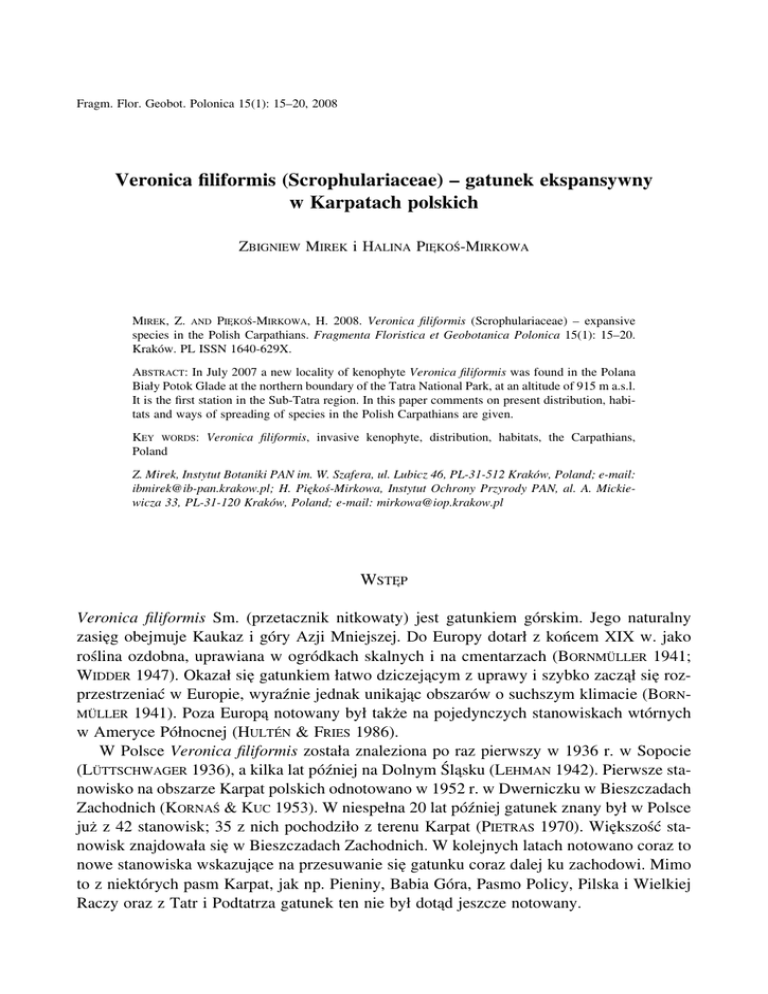 Veronica filiformis (Scrophulariaceae) – gatunek ekspansywny w