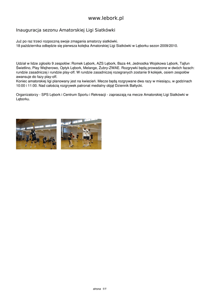 www.lebork.pl - Inauguracja sezonu Amatorskiej Ligi Siatkówki